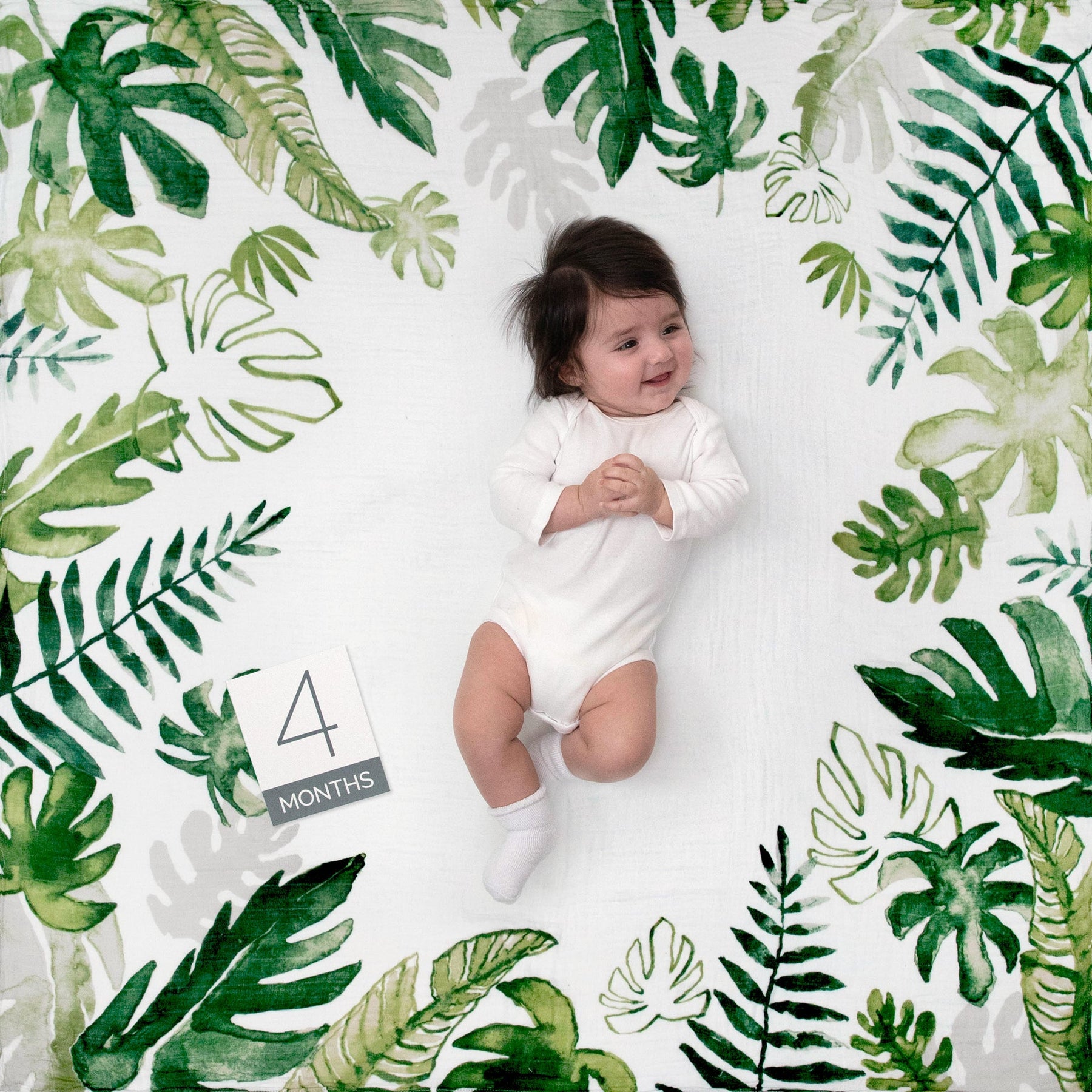 Easily document baby's first weeks, months and years with our versatile Photo Blanket & Milestone Set. Featuring our signature artisan illustrations and a ready-to-use baby age card set, each blanket offers a unique photo backdrop for scrapbooks and social media sharing. Perfect for swaddling, nursing, and snuggling between photo ops, too!