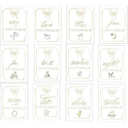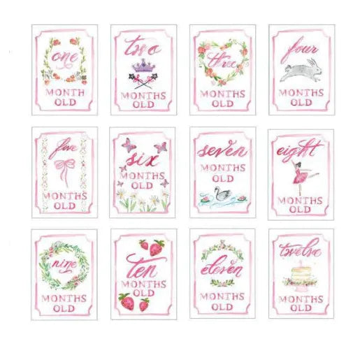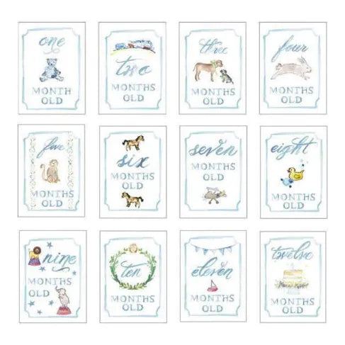 Set of 12 watercolor cards to commemorate each month of baby's first year! The back of each card has space to write baby's monthly milestones and memories. Available for a boy or girl baby!