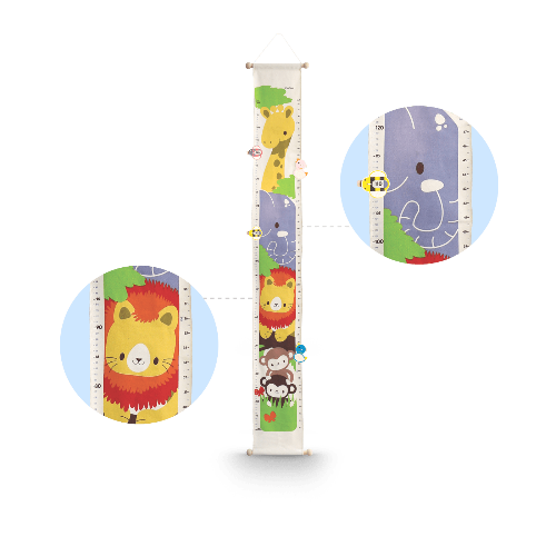 INCLUDES: A hangable jungle animal chart includes 4 animal measuring clips and an attached rope for easy hanging. Suitable for children 12 months and older.
