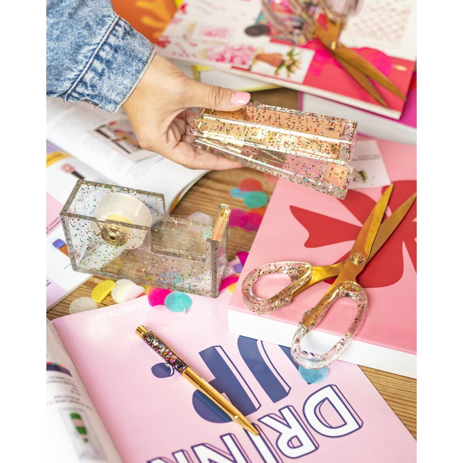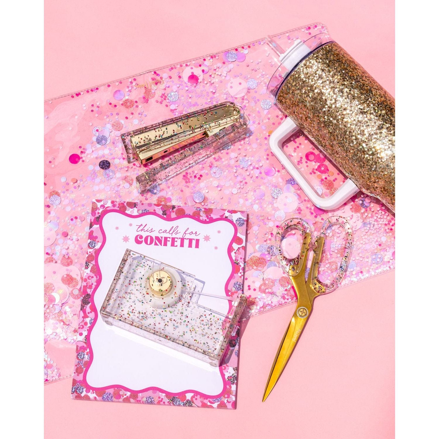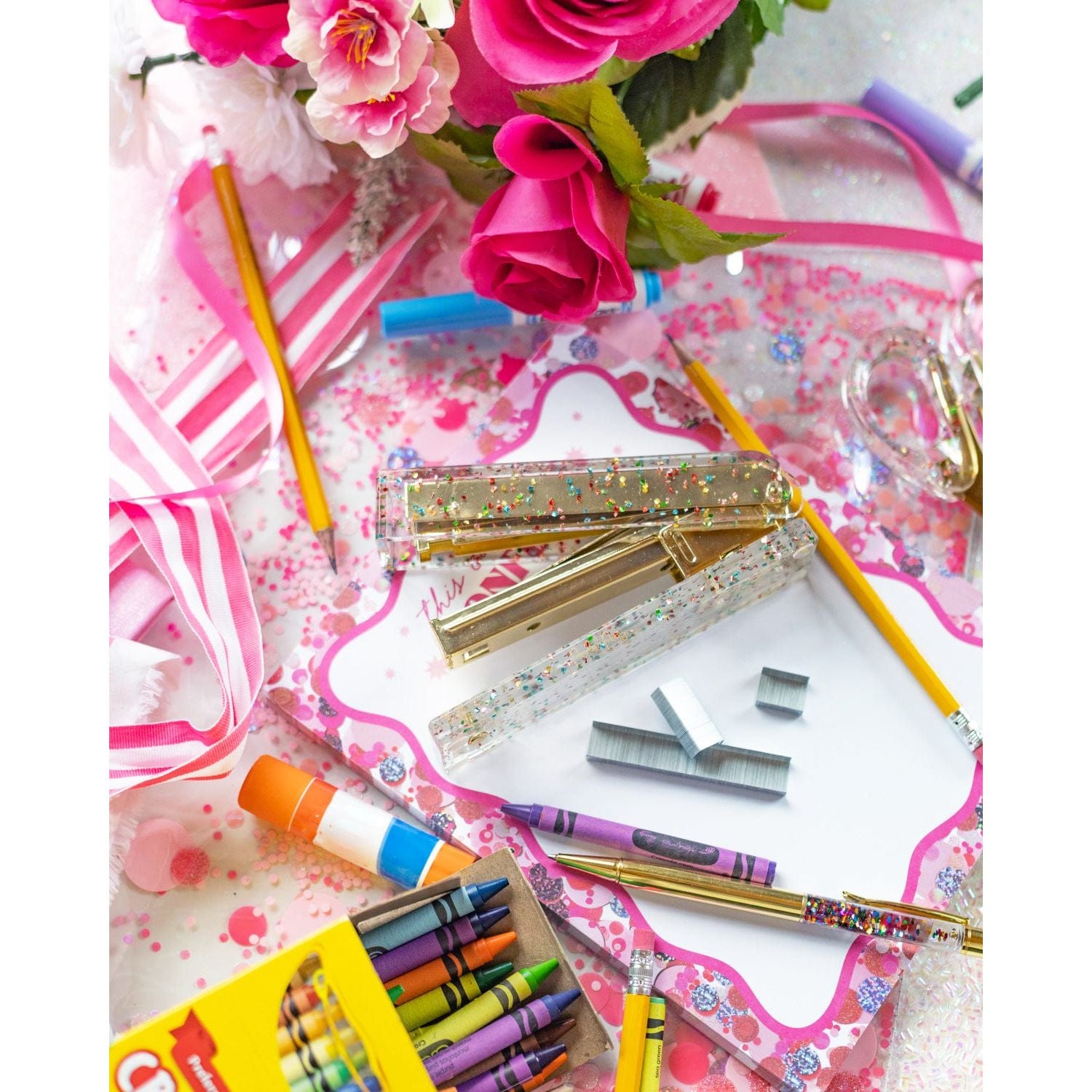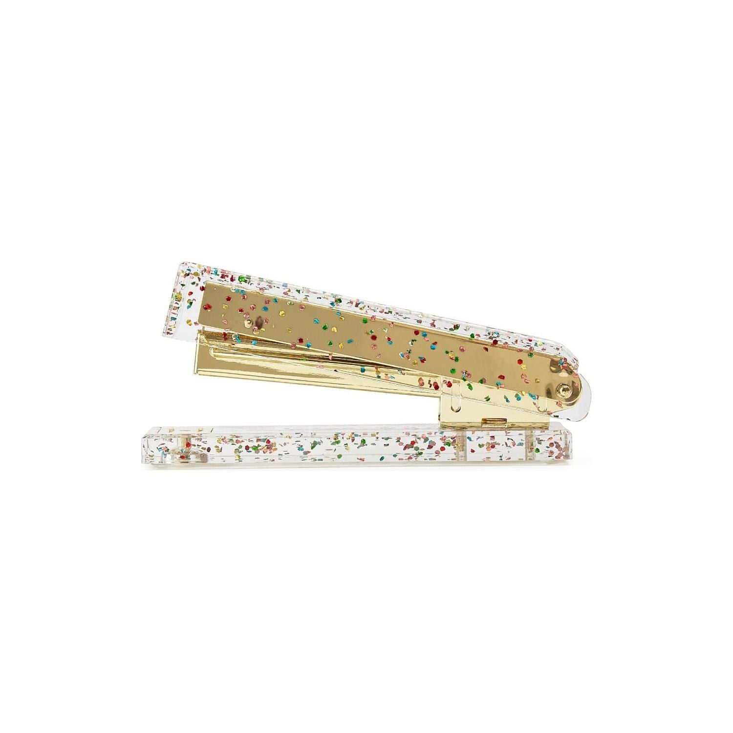 Bring the party to your desk with this confetti stapler! Designed to brighten up any desk, this cute stapler will bring a touch of fun to your daily tasks. Perfect for home, school, and office, this high-quality novelty stapler is not just cute but also functional; effortlessly security your documents. Don't blame us when you start looking for any excuse to staple!