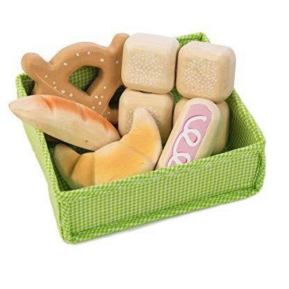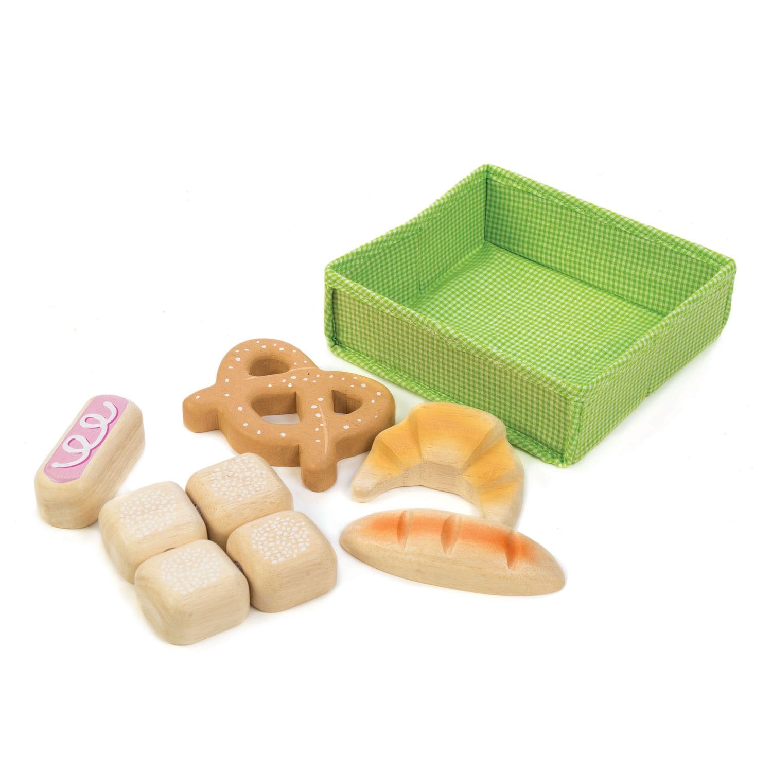 The bread crate has a fantastic baked selection! A solid wood croissant, fougasse, iced bun, pretzel and baguette. This would be a great addition to anyone’s kitchen and afternoon tea set. Encourages creative and imaginative play