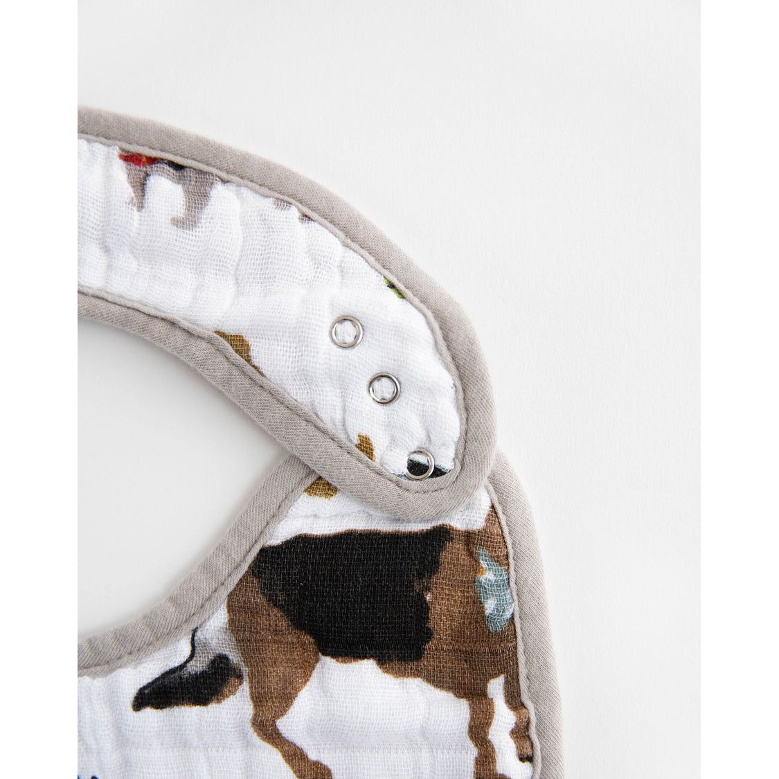 Soft and absorbent, our multi-layer bibs are built to handle all of baby's spills and messes. Featuring three unique, hand-painted prints and a snap-on function to ensure a snug fit that grows with your baby.