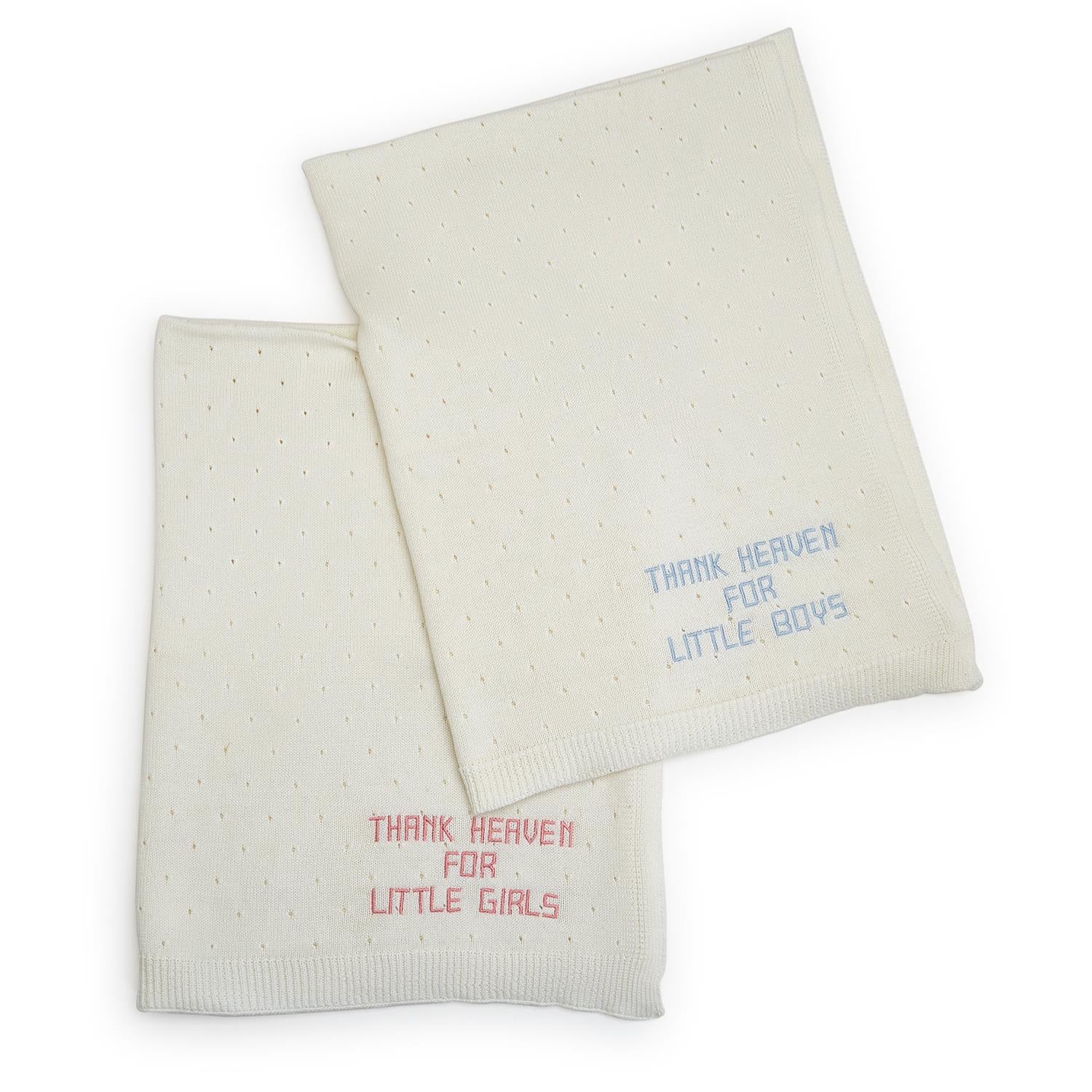 Wrap your little angel in heavenly softness with our Thank Heaven Soft Knit Blanket. This exquisite blanket is crafted from the finest quality cotton material to provide ultimate comfort and warmth for your baby. Available in both blue and pink, it features delicate embroidery that adds a touch of elegance and charm.