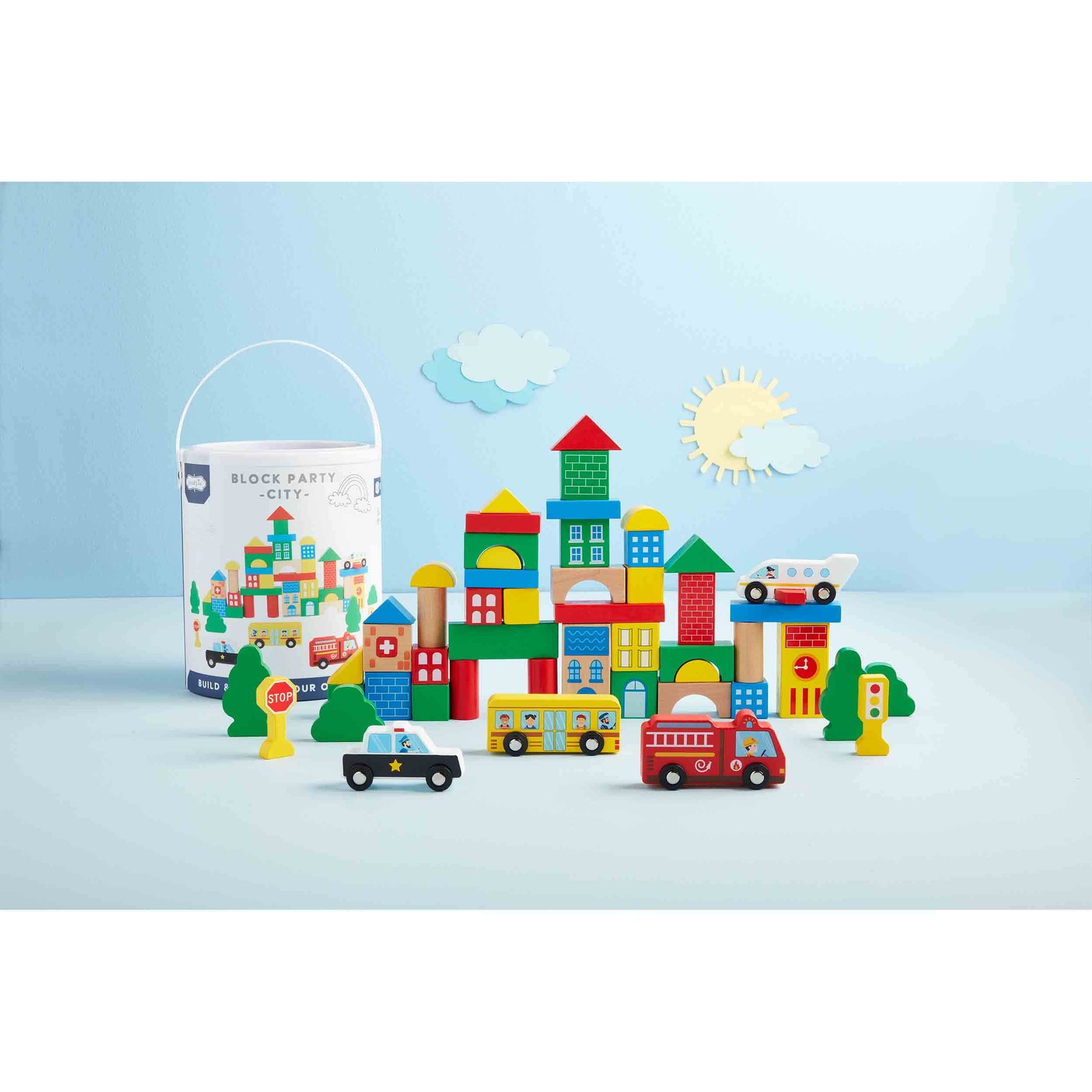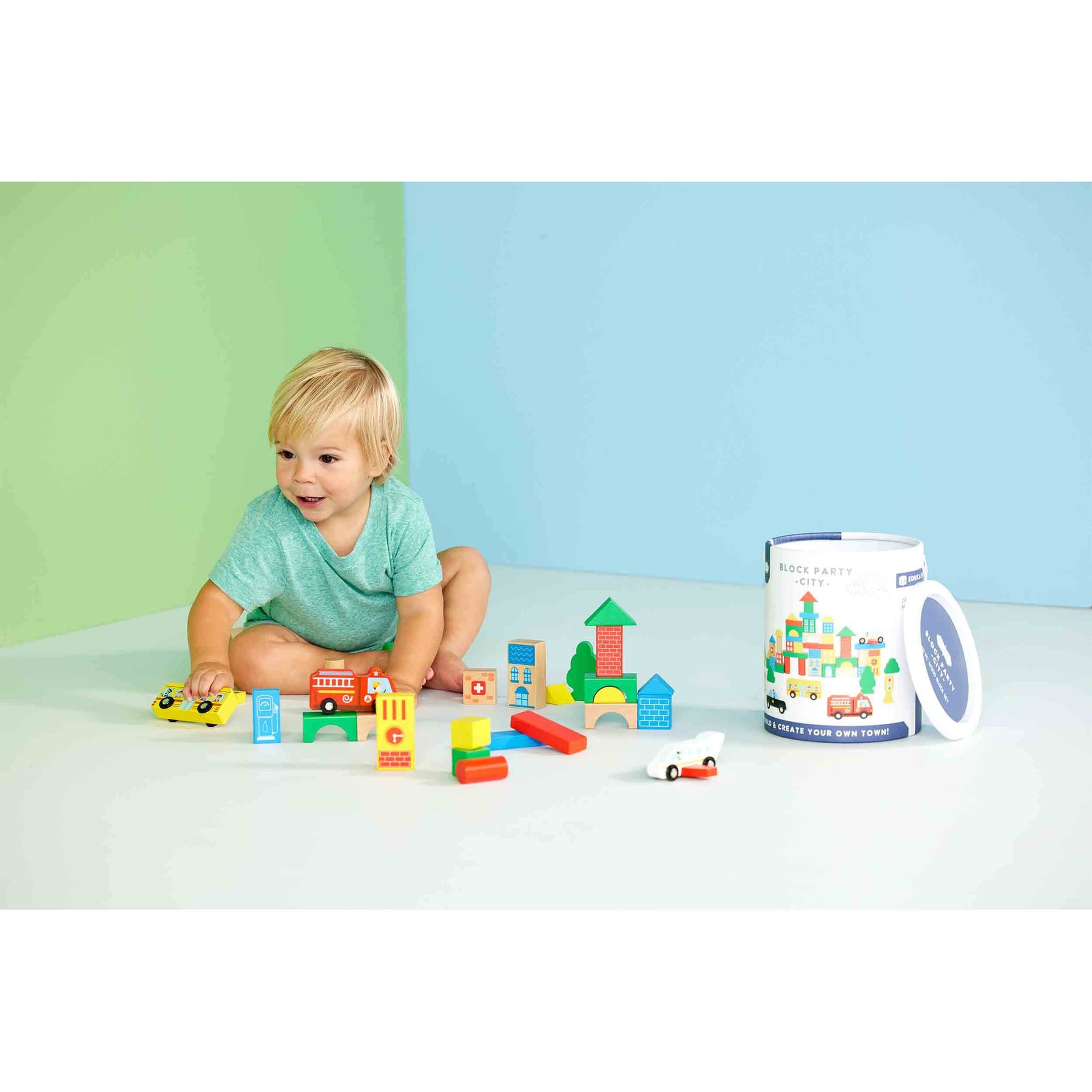 Build, play, knock it down, repeat with our adorable City Block Set. The wooden city block set comes with 50 pieces! Let your little one create their own city and tower full of bright colors for hours of endless fun. This toy is perfect for children ages 2 and older for playtime.