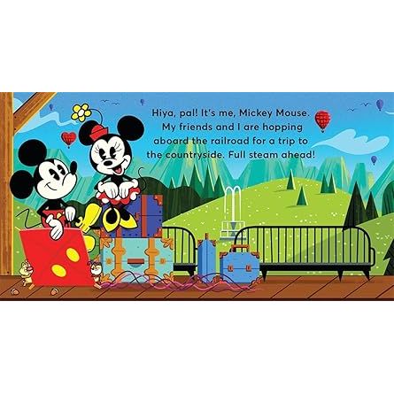 All aboard! While reading a simple story about Mickey’s train ride to the countryside, fold this book out car by car to explore the train inside and out—and meet Minnie, Donald, Goofy, and more of Mickey’s pals along the way!