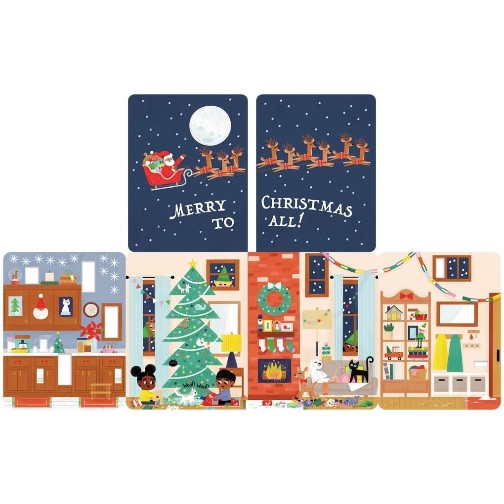In this Christmas story, follow two children on their way to Santa’s workshop as they travel through a city, into a gleaming forest, and across the glittering snowscape. Young readers will delight in the clever die-cut surprises throughout and the dramatic quadruple gatefold at the end that folds out into a special, festive surprise.