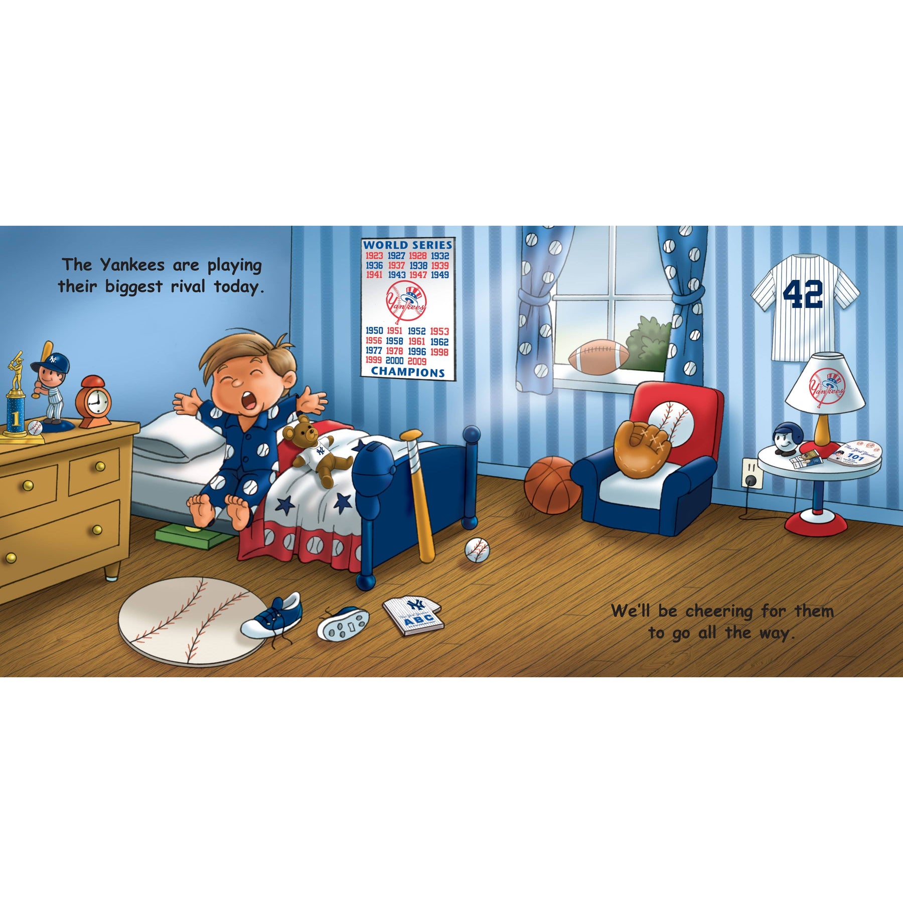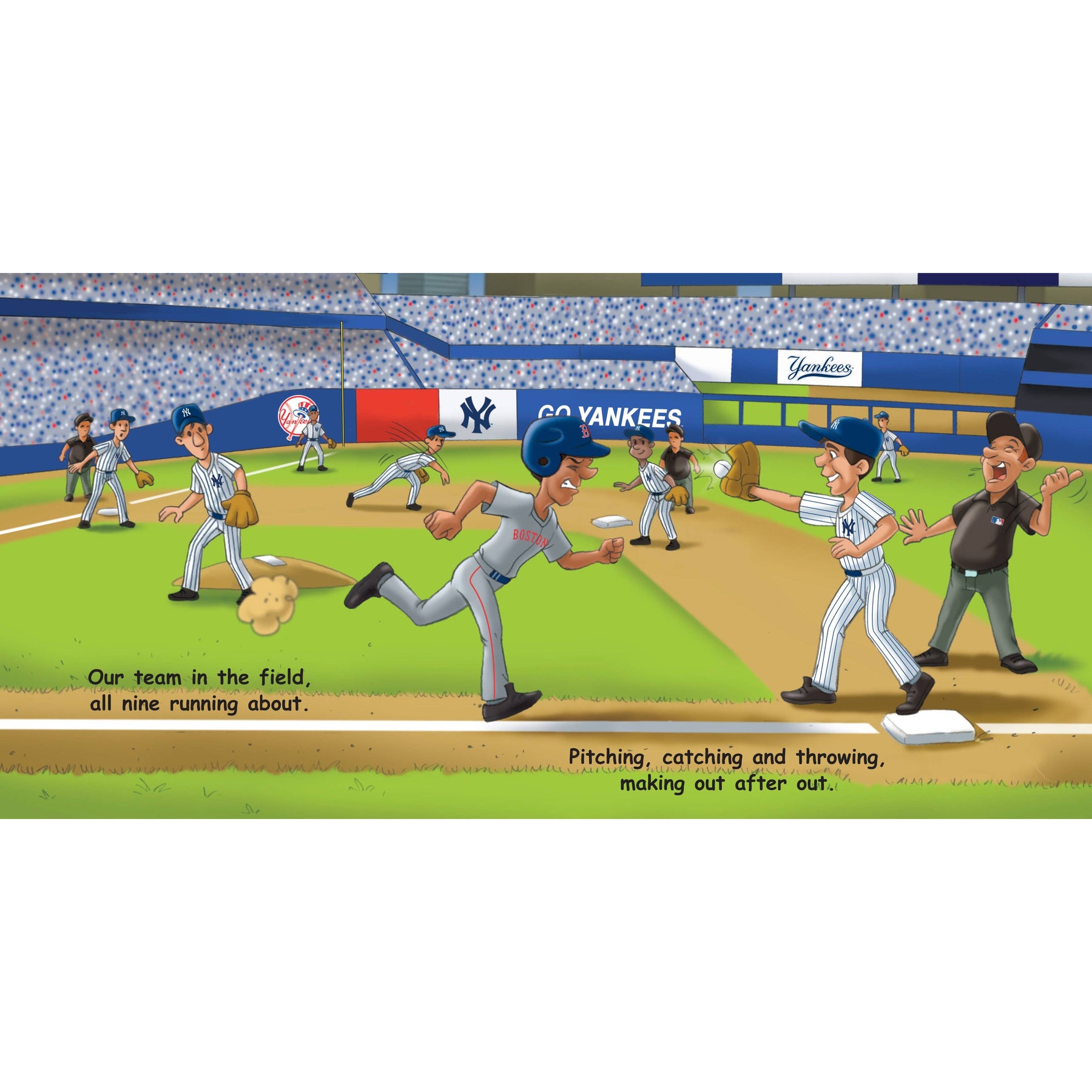 Good Night, Yankees follows in the long tradition of ‘good night’ stories loved by children everywhere. The bedtime story takes children through the day of the big game – good morning New York as everyone wakes up in anticipation, good afternoon Yankees fans as everyone heads to Yankee Stadium, good evening Yankees as the teams take the field and game begins, and of course good night everyone as we say good night to Yankee Stadium, the players and young fans ‘dreaming of their major league debut.’ Adorable illustrations and accurate drawings of Yankee Stadium and the Yankees only found in Good Night, Yankees. A home run for every young Yankees fan. Officially licensed by Major League Baseball.
