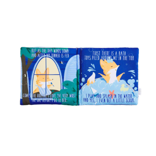 Illustrated soft baby book about getting ready for bed features light-up twinkle lights.