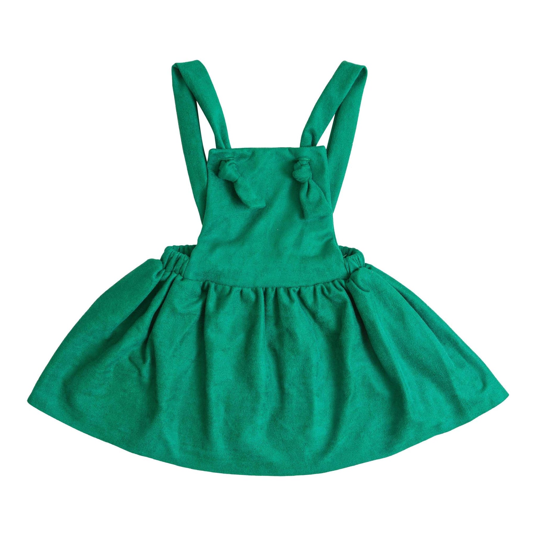 Faux Suede Pinafore is super soft. Straps are adjustable for the perfect fit. Wear them straight or crisscrossed. Super cute with our flutter sleeve leotards. Runs true to size, but if your little one is between sizes or tall we suggest ordering a size up.