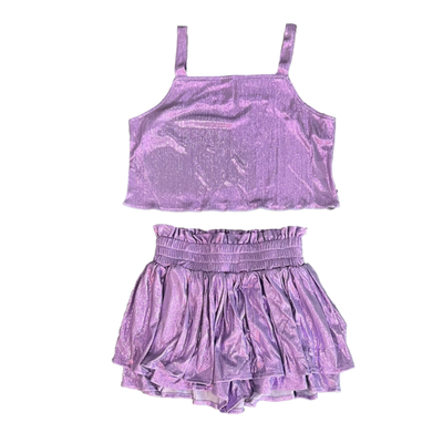 Tweenstyle By Stoopher Tank And Skort Plisse Shine Set, Purple, 4-6X