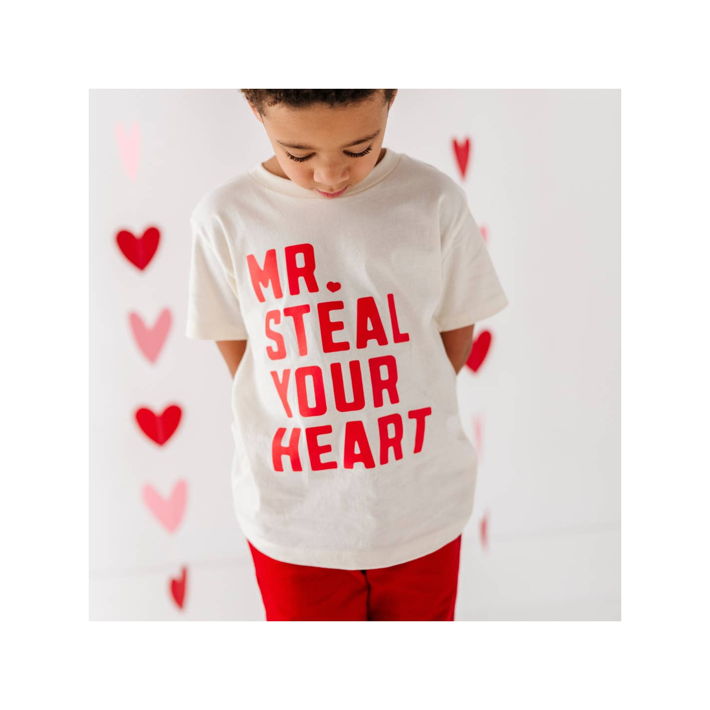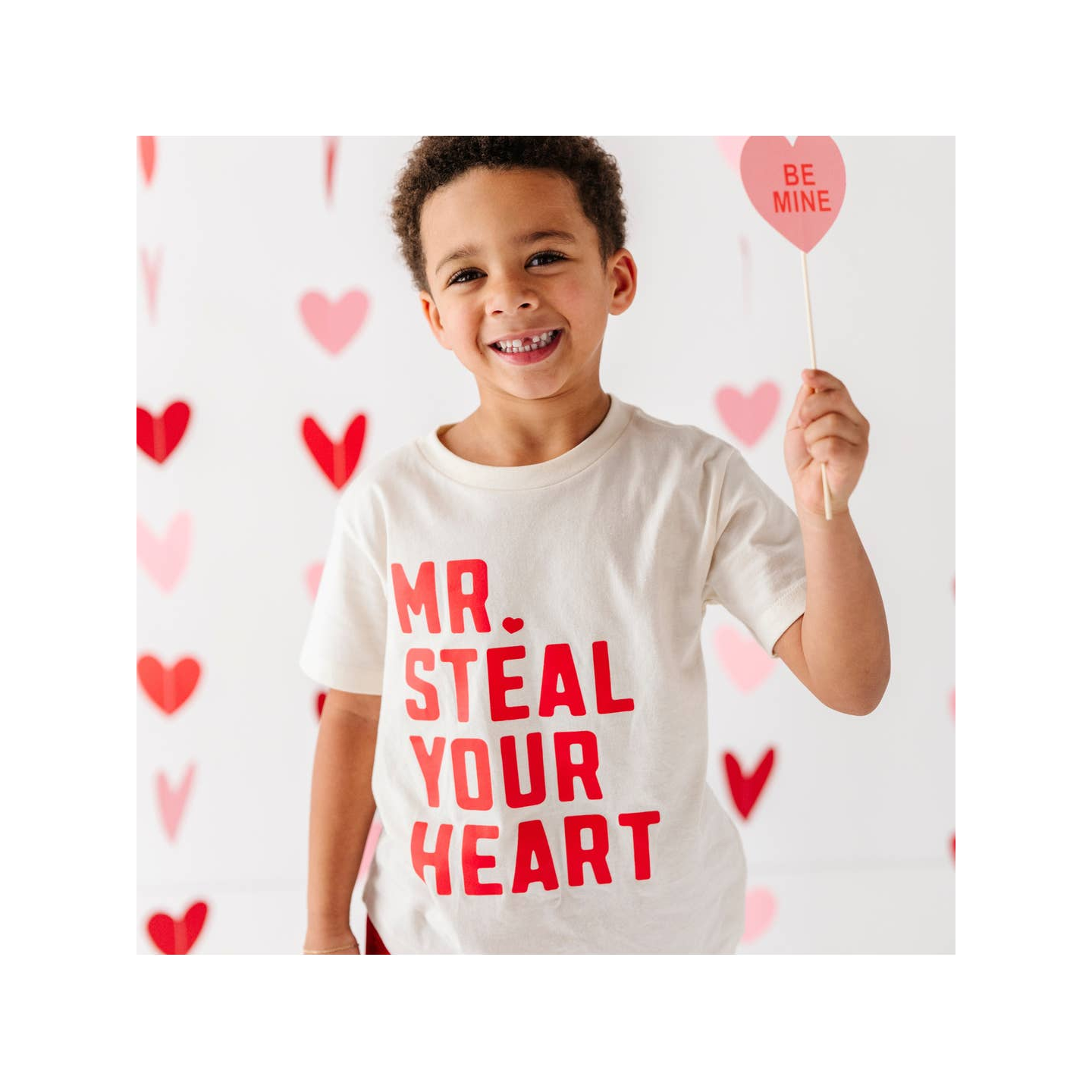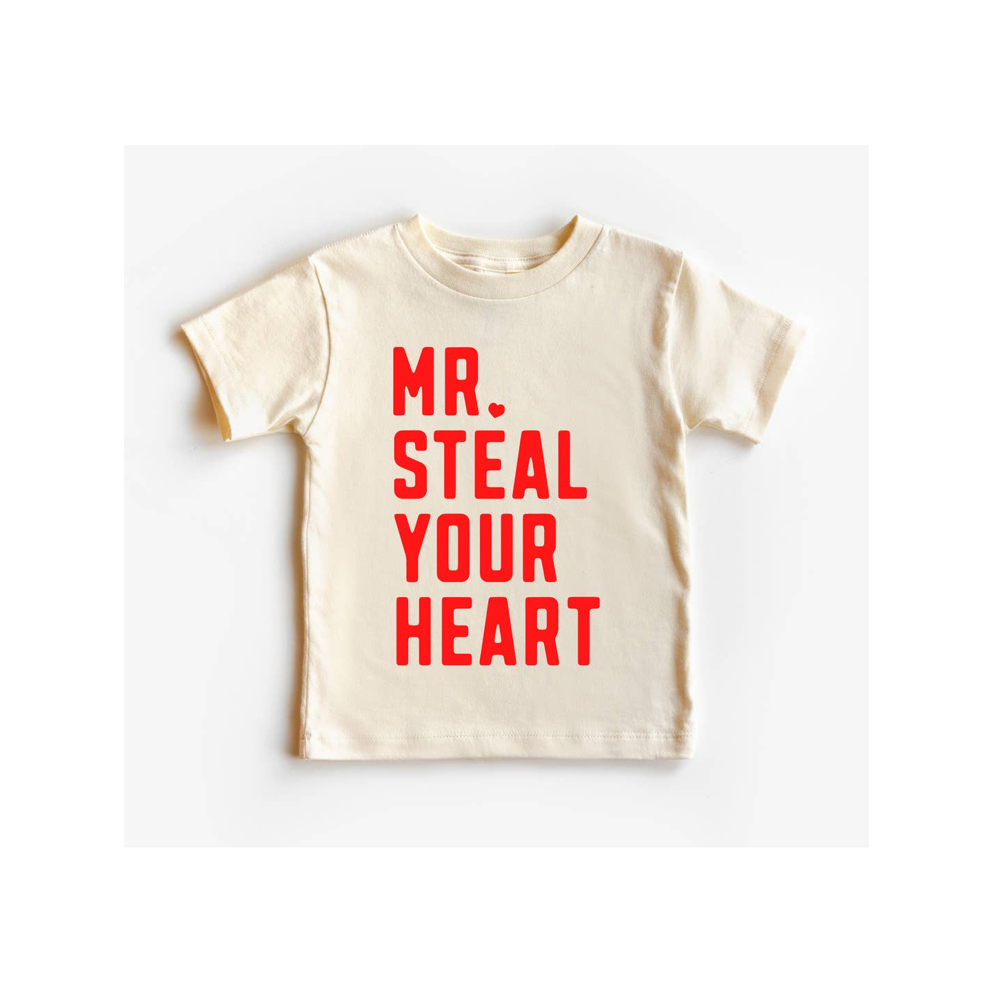 Benny and Ray Apparel Mr Steal Your Heart Valentines Day Shirt Toddler and Youth, Natural