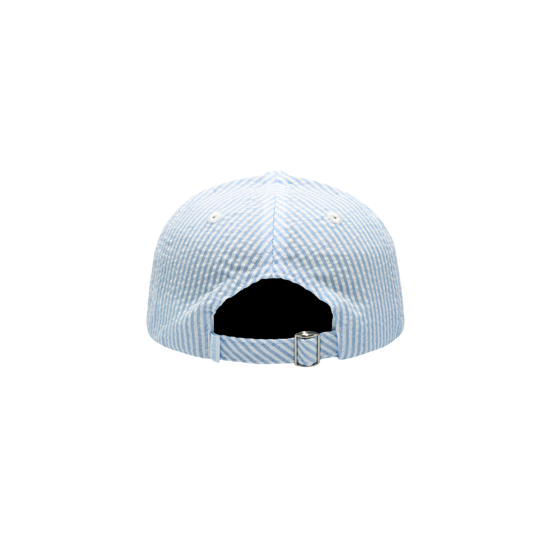 Blue/white seersucker baseball hat with "BIG BRO" embroidery