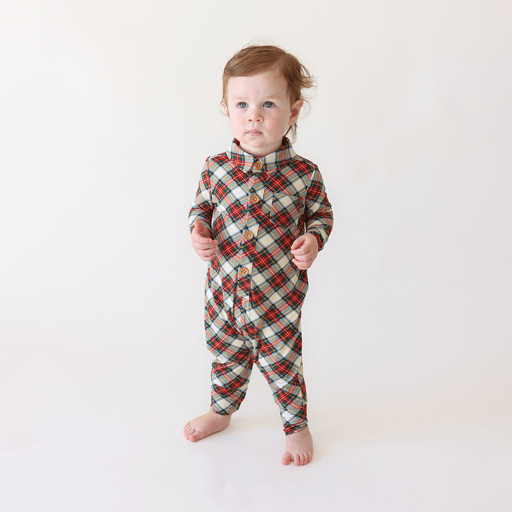 Posh Peanut Marqui Long Sleeve Collared Henley Long Romper