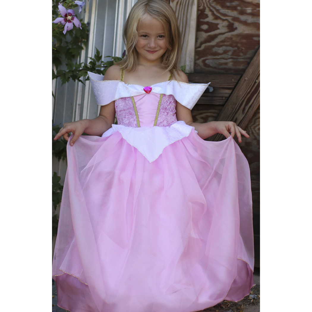 Be the talk of the tea party with this deluxe Sleeping Cutie-inspired gown. Made with the highest quality fabrics, trims, and accents. This gown features exquisite detailing, beautiful patterns, and layers of rich textiles. Only the premium quality satins and organza to produce this Great Pretender® masterpiece.