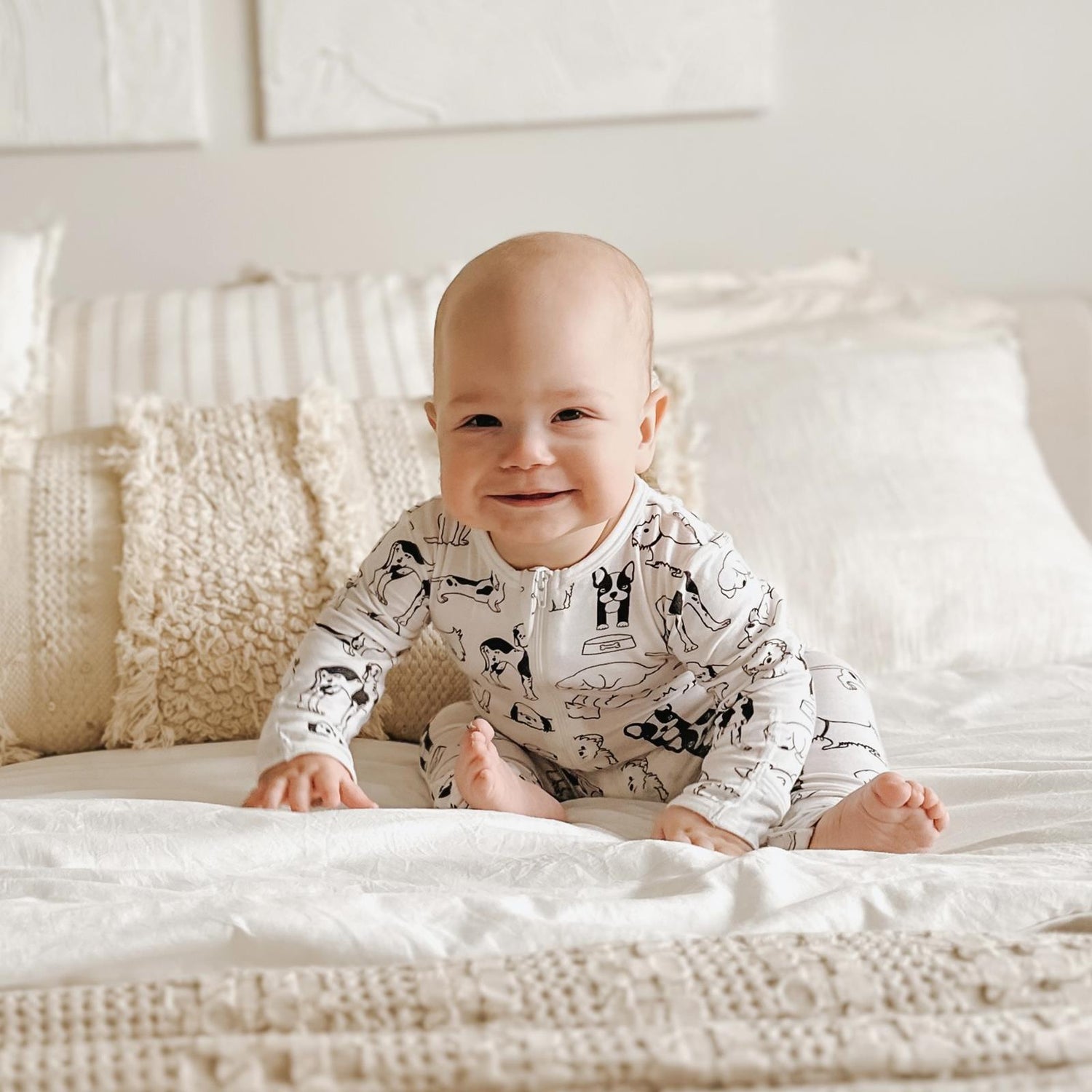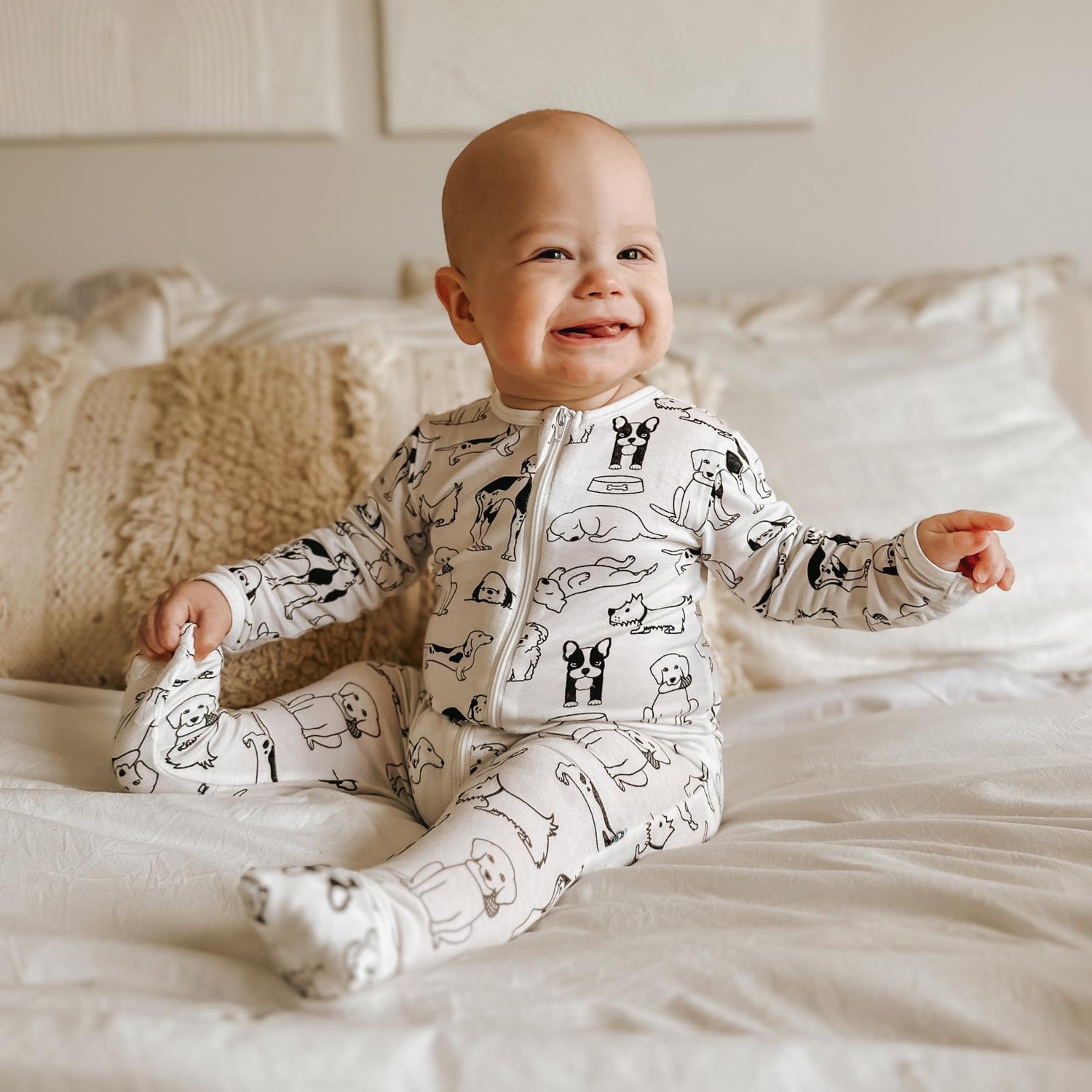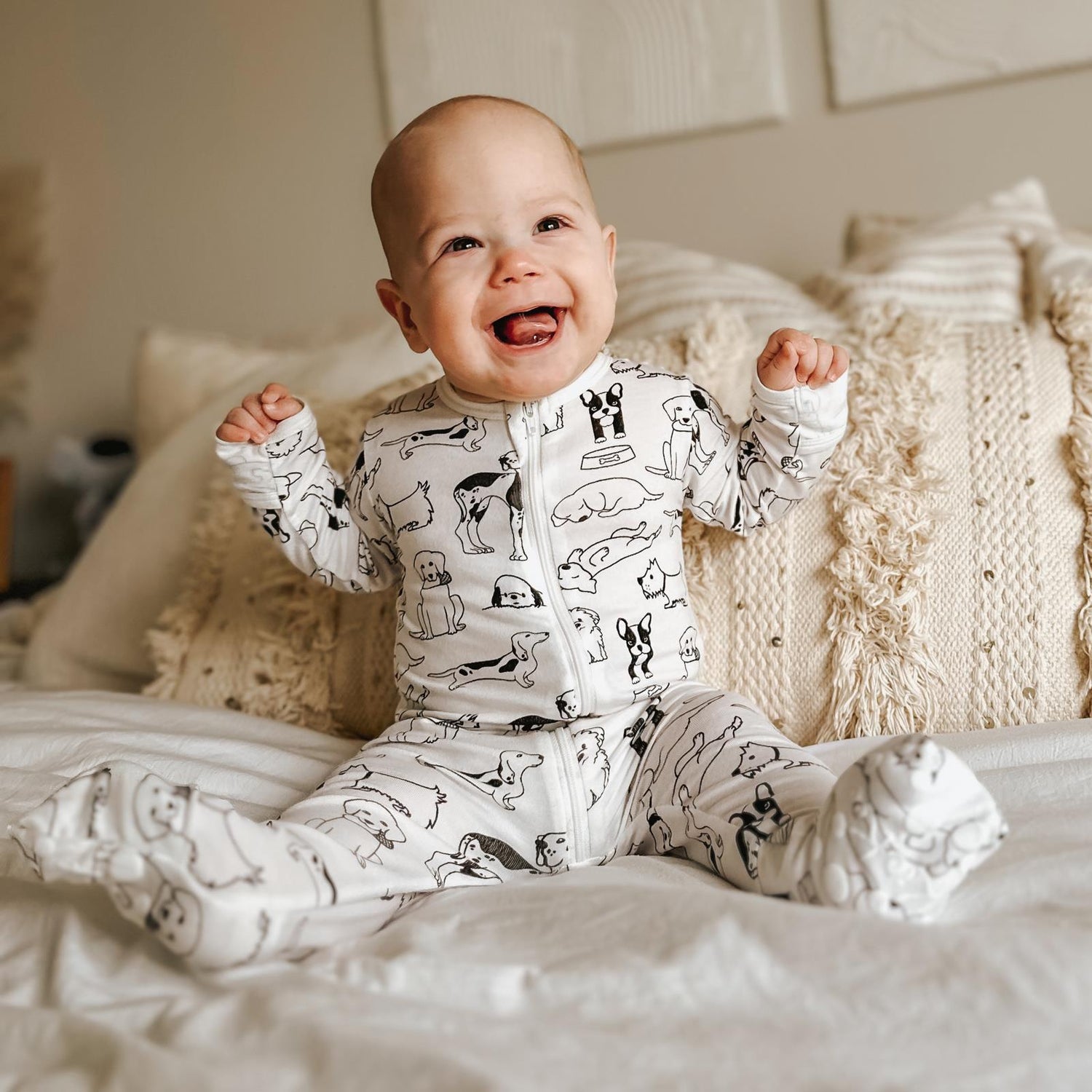 Kickee Pants Print Convertible Sleeper With Zipper, Natural Dogs