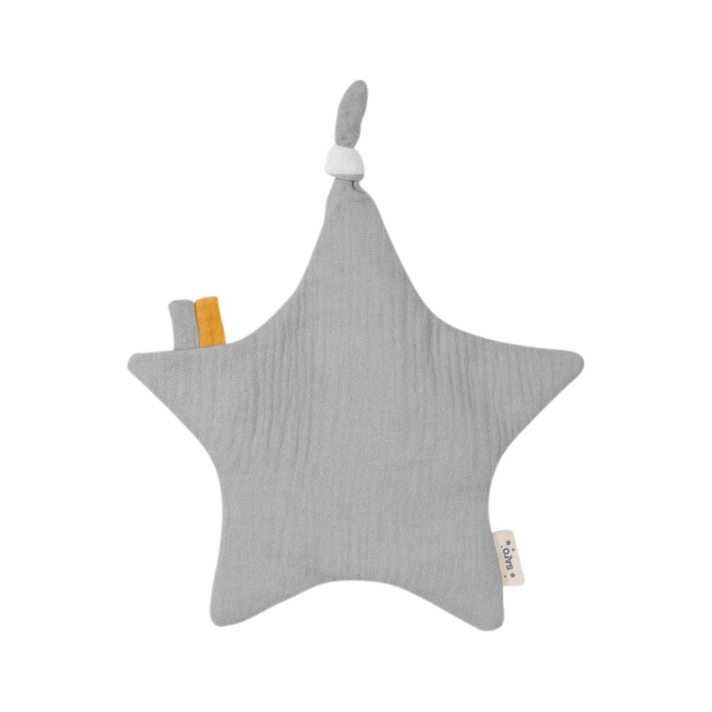 Babies love the sound of things crunching, crinkling or tearing. That's why this crinkle star will be their favorite! With sound paper inside, it will keep your little one entertained while playing to squeeze and twist it creating new sounds. Super soft and soothing touch, its different textures will stimulate the senses of your baby. In addition, you can hang your favorite teether or pacifier from its knot hanger.