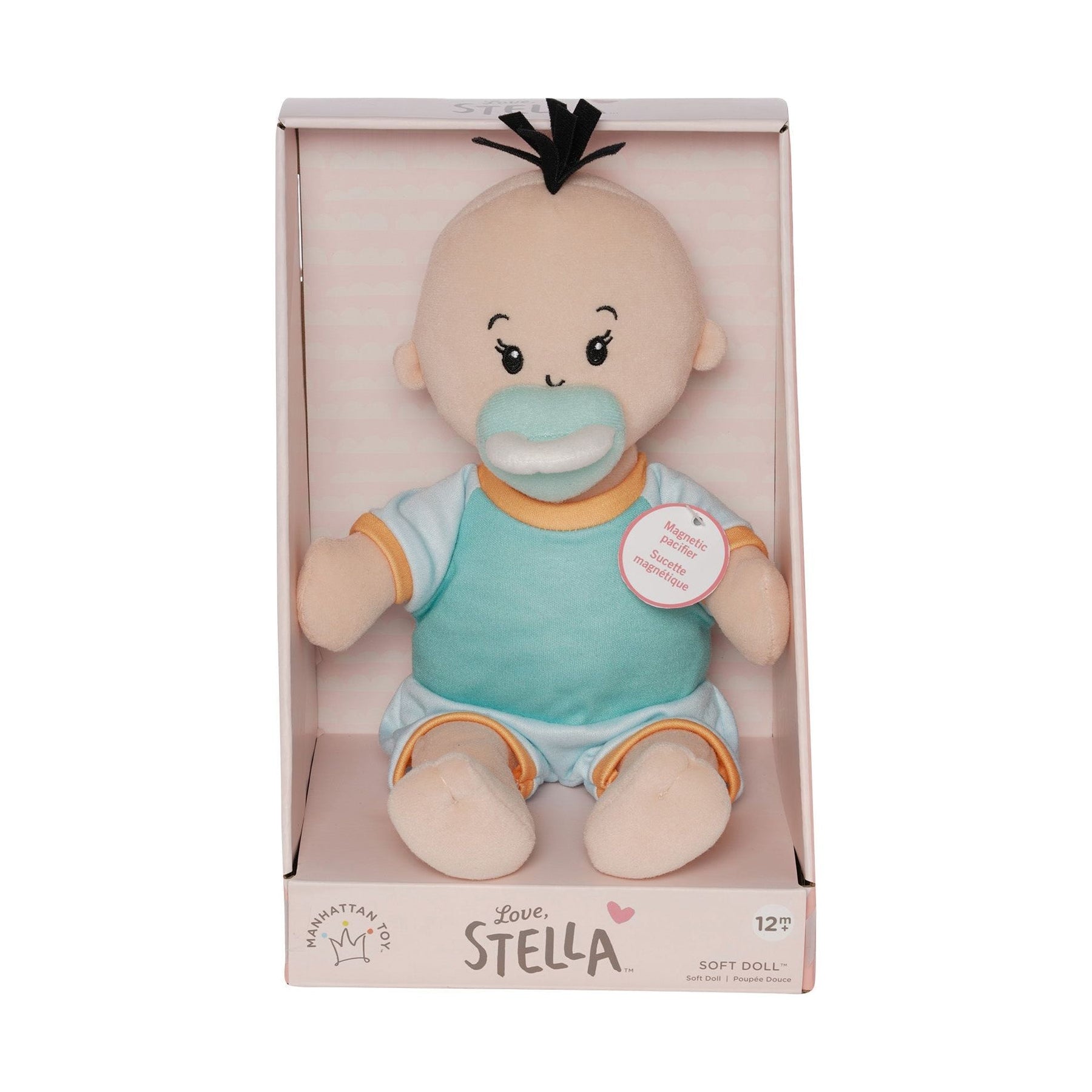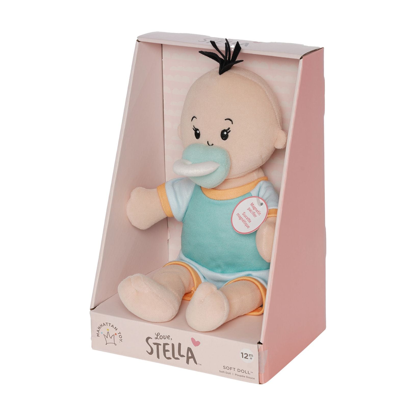 The doll every toddler should have. The Love, Stella soft doll is perfect for gifting with its adorable design and unique magnetic pacifier.