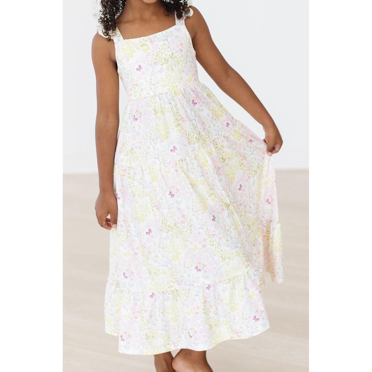 Our Maxi Dress is perfect for summer! Back has a cute cutout and straps are finished off with a sweet ruffle on the shoulder.