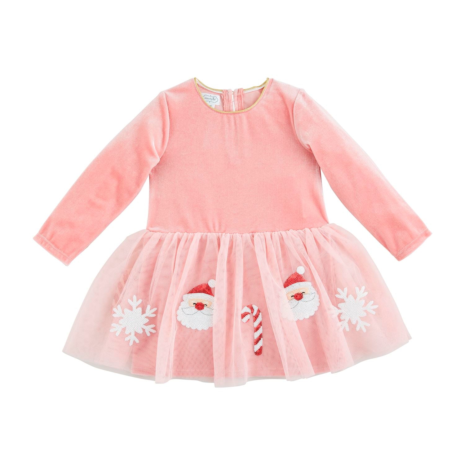 Velour long sleeve dress features lurex neckline and mesh skirt with sequin detail.
