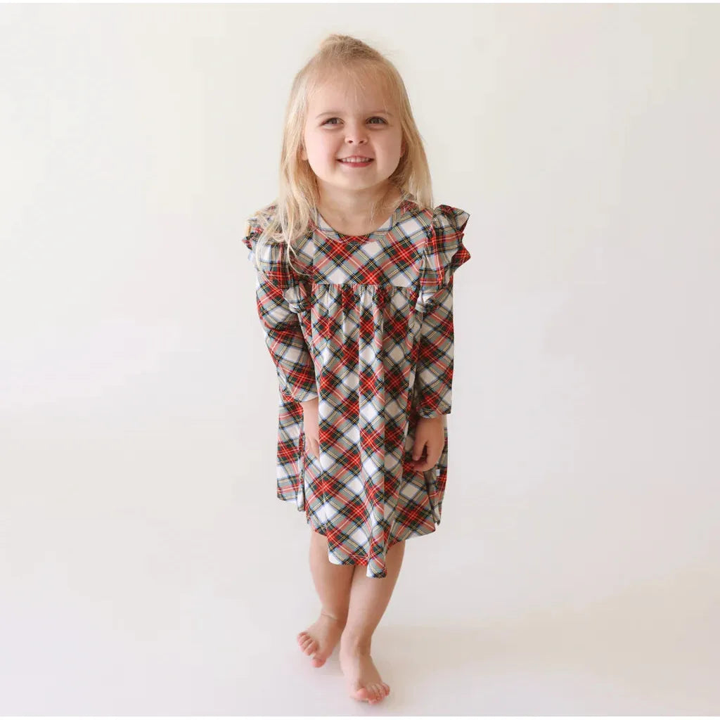Girl dresses in our signature Päpook® viscose from bamboo. Our dresses are perfectly designed to be comfortable yet show-stopping: 3/4 sleeves, ruffles on trim, and buttery soft. Extra twirly and daughter approved! Great for all occasions—paired with leggings, mix/match with many of our collections, or pair it with a jean jacket.
