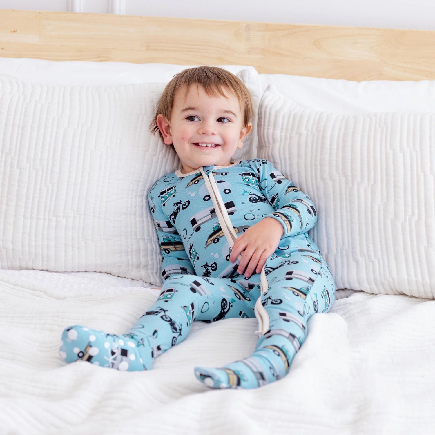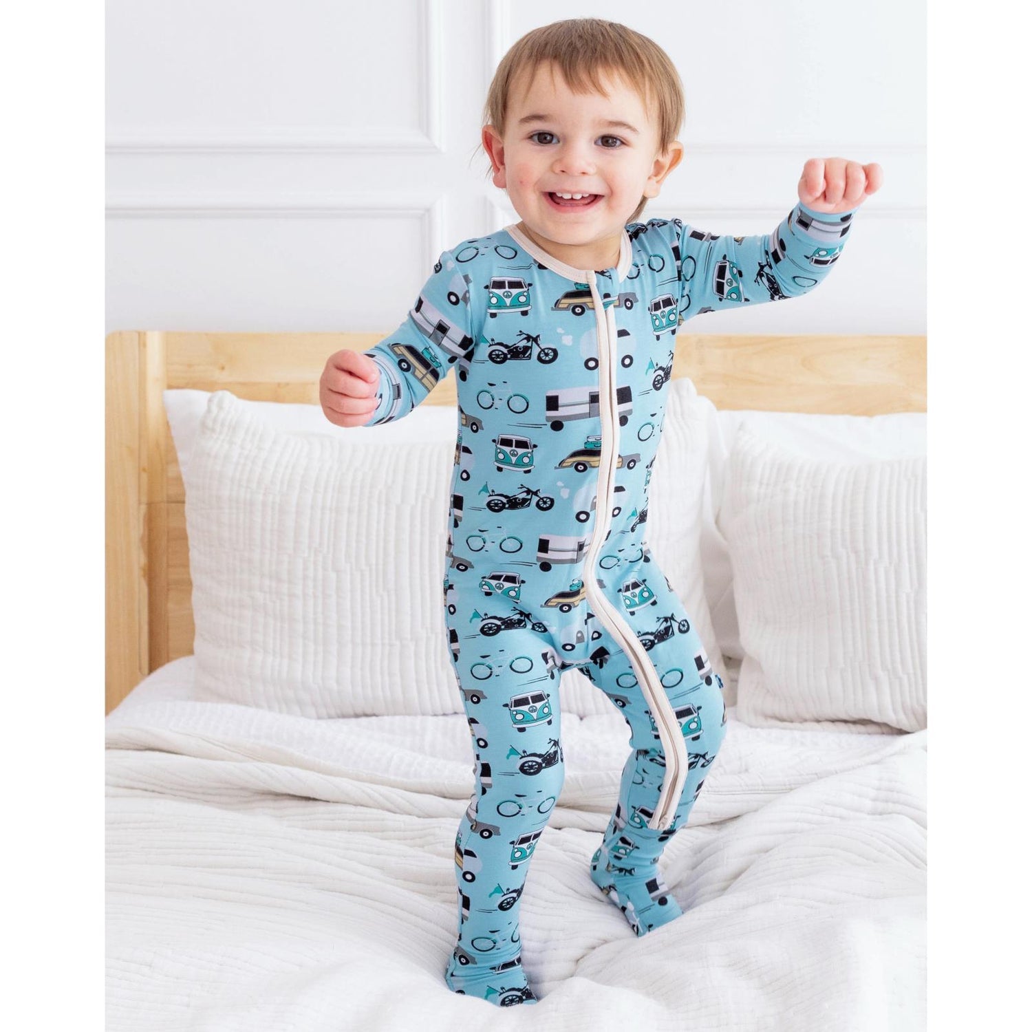 Kickee Pants Print Footie With 2 Way Zipper, Seaside Blue On The Way