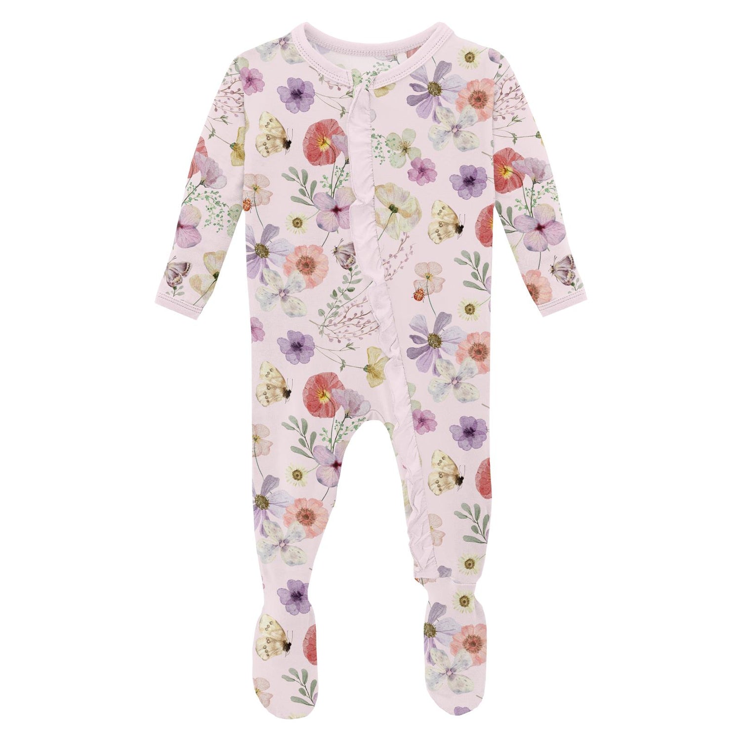 Kickee Pants Print Layette Ruffle Footie With 2 Way Zipper, Shrinking Violet Pressed Flowers
