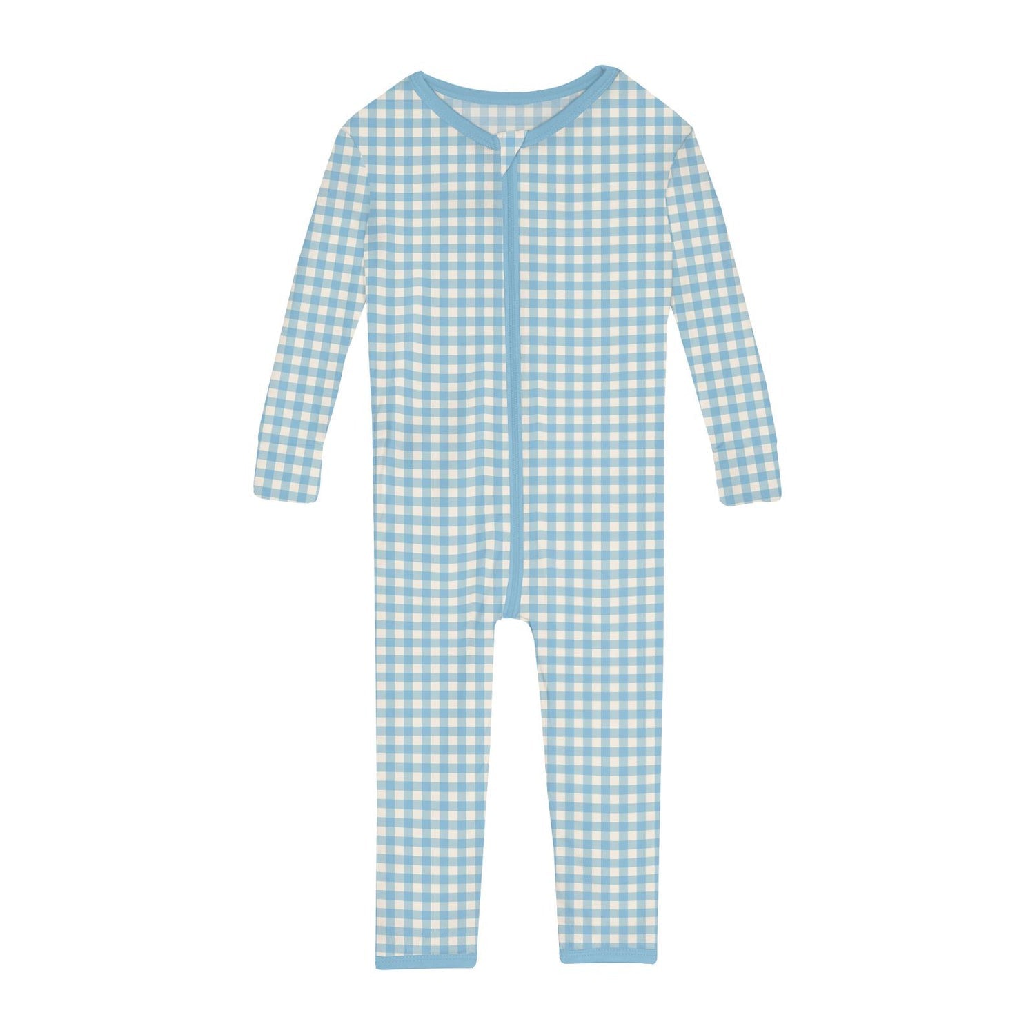 Kickee Pants Print Convertible Sleeper With Zipper, Seaside Blue Gingham