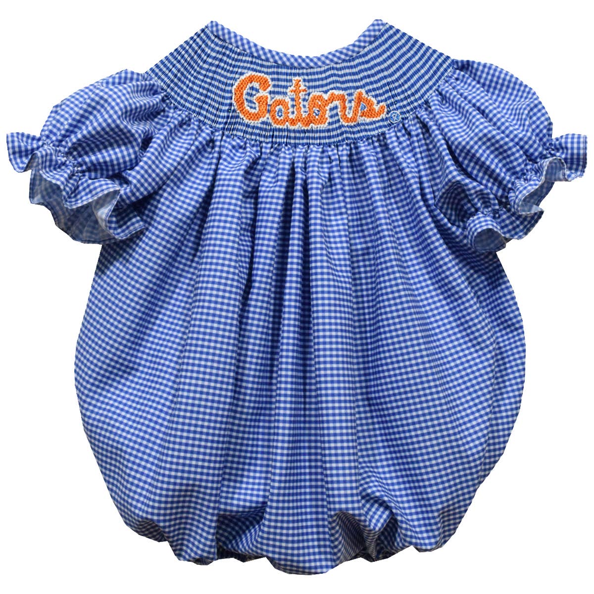 Florida Gators Smocked Blue Gingham Short Sleeve Girl Bubble