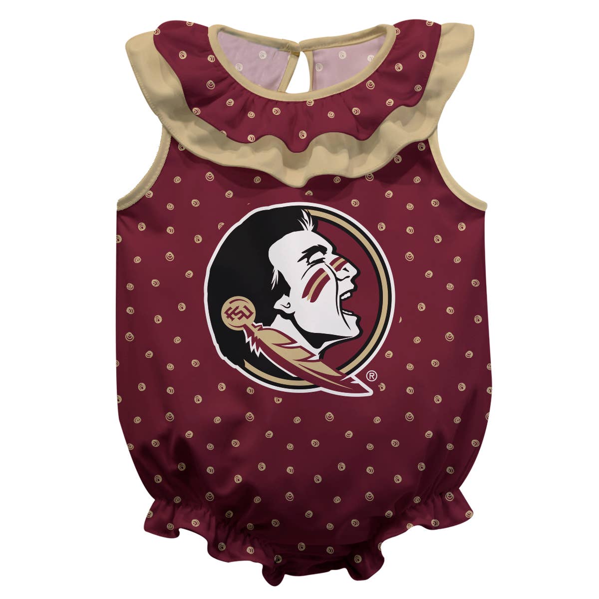 FSU Seminoles Swirls Maroon Sleeveless Ruffle Onesie Logo Bubble