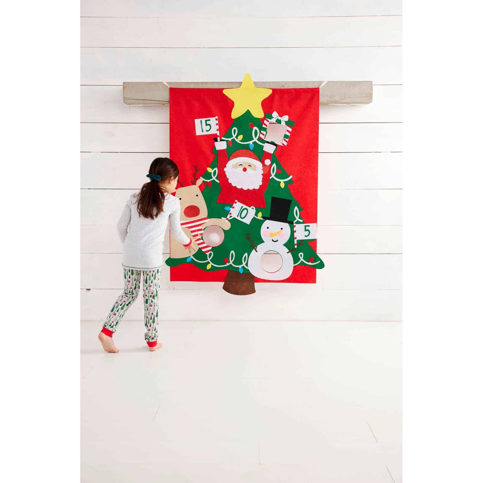 Our Christmas Snowball Toss Game Set is perfect to hang anywhere. The four piece set comes with a 36 1/4" x 46 1/2" felt game. Score points by throwing pom-pom snowballs through targets in felt doorway toss game. This game is fun for all ages 3 - adult! Grab your favorite Mud Pie gift for the winner.