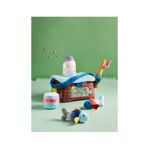 Your fishing buddy needs this super cute Fishing Plush Play Set. The six-piece set includes a tackle box, a fishing pole, two fish, a can of worms and a jar of fireflies. The fireflies even light up inside their jar! This fishing plush play set is intended for children 18 months and older.