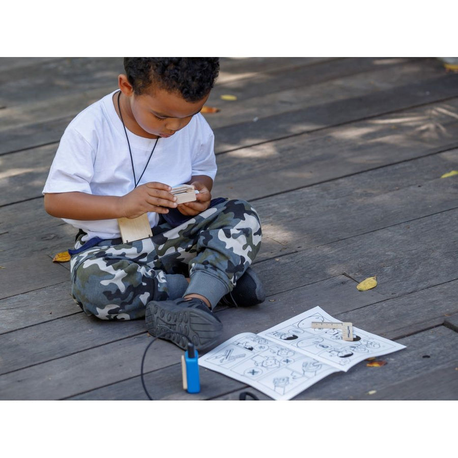 Role play as a secret agent with this fully equipped Secret Agent Play Set that includes an ID badge, finger scanner, walkie-talkie handset, L-shaped scale and coloring comic (a printable file is also available for online download). Children can bring this set with them wherever they go, as it comes with a utility belt that can keep all gadgets safe inside!