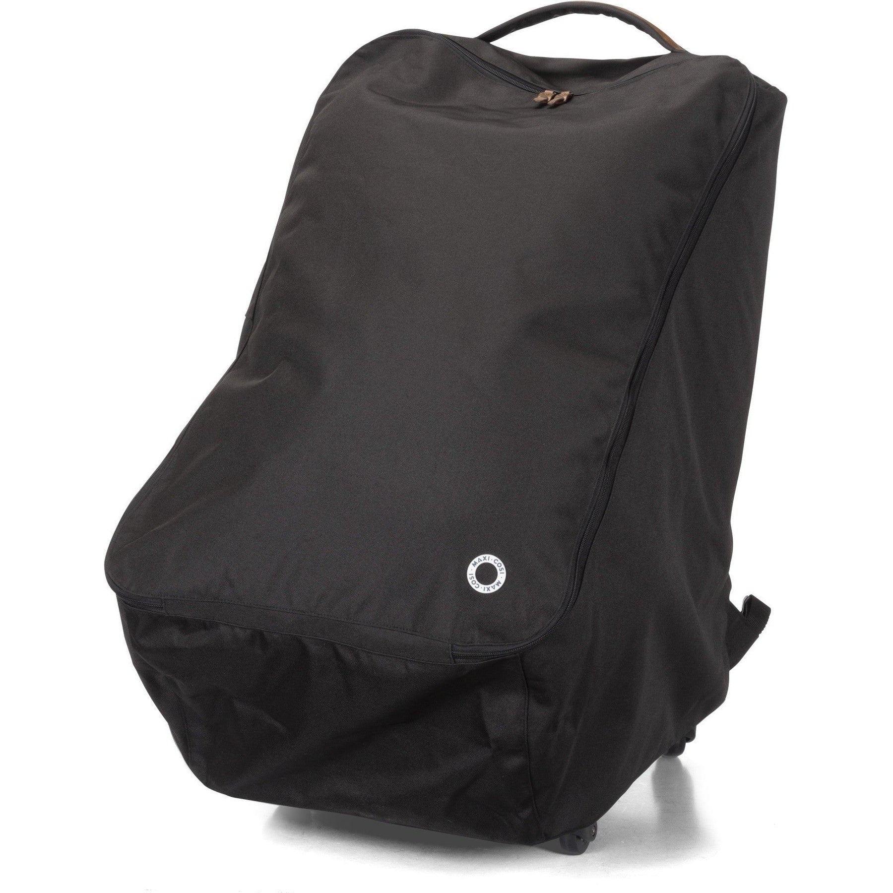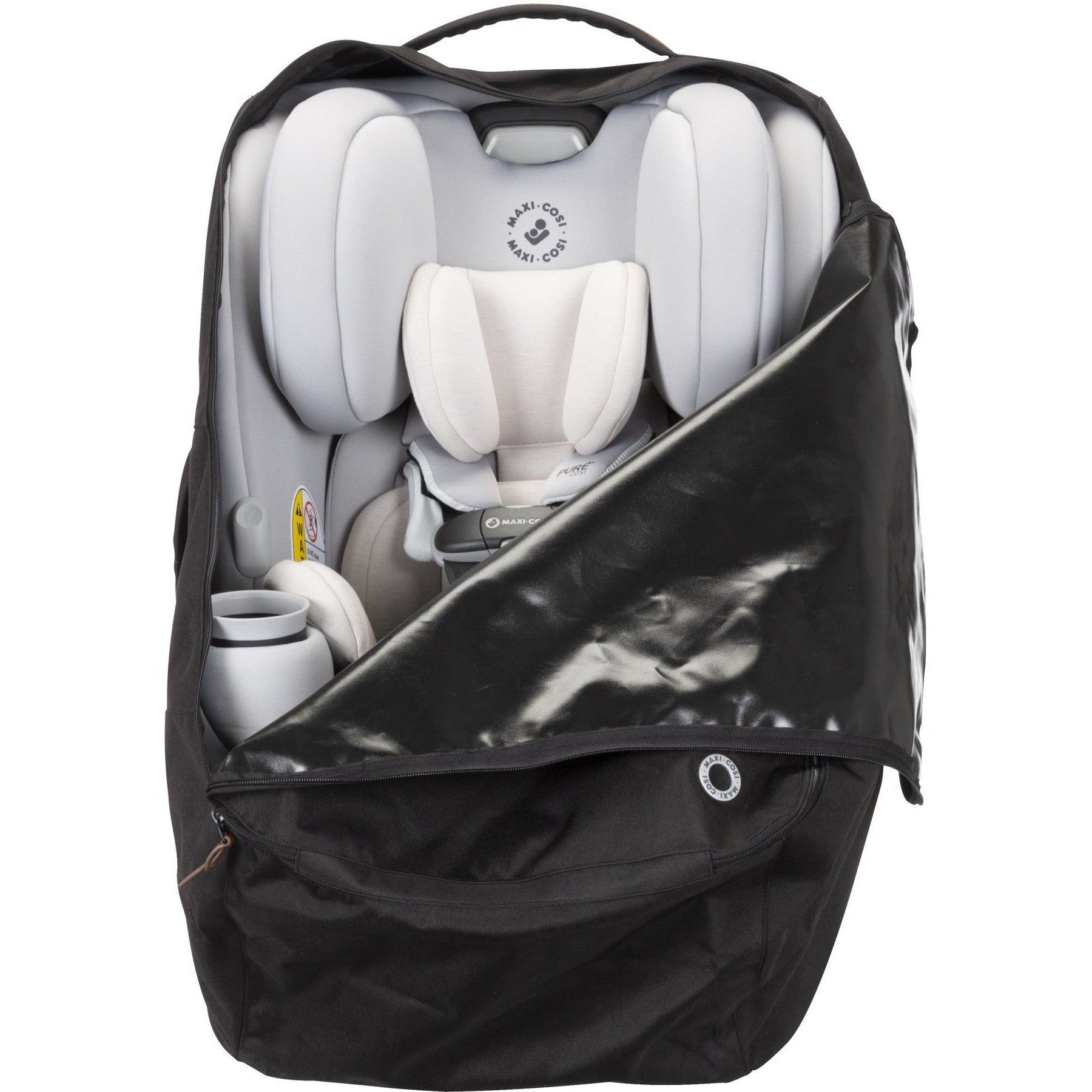 Travel with ease on every adventure with the Maxi-Cosi Wheeled Car Seat Travel Pack, which fits Maxi-Cosi convertible car seats (except for Emme 360™). Its carry handle and convenient roller wheels make it easy to tote around the airport, or anywhere you’re going. With its comfortable, padded straps, you can also wear it on your shoulders as a backpack. The travel bag stays protected from the elements with its woven polyester fabric and nylon webbing. The easy-to-use zipper fully opens to quickly load the car seat into the bag.