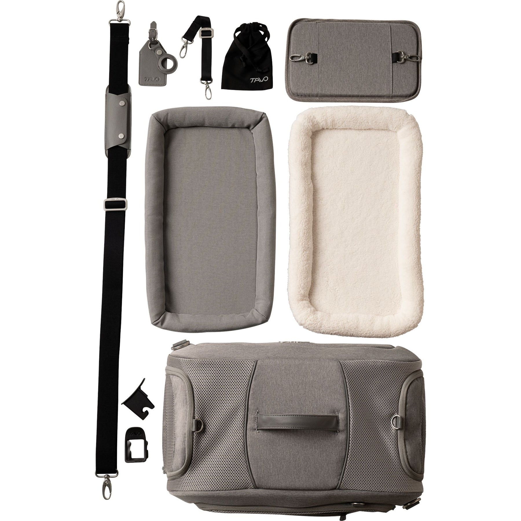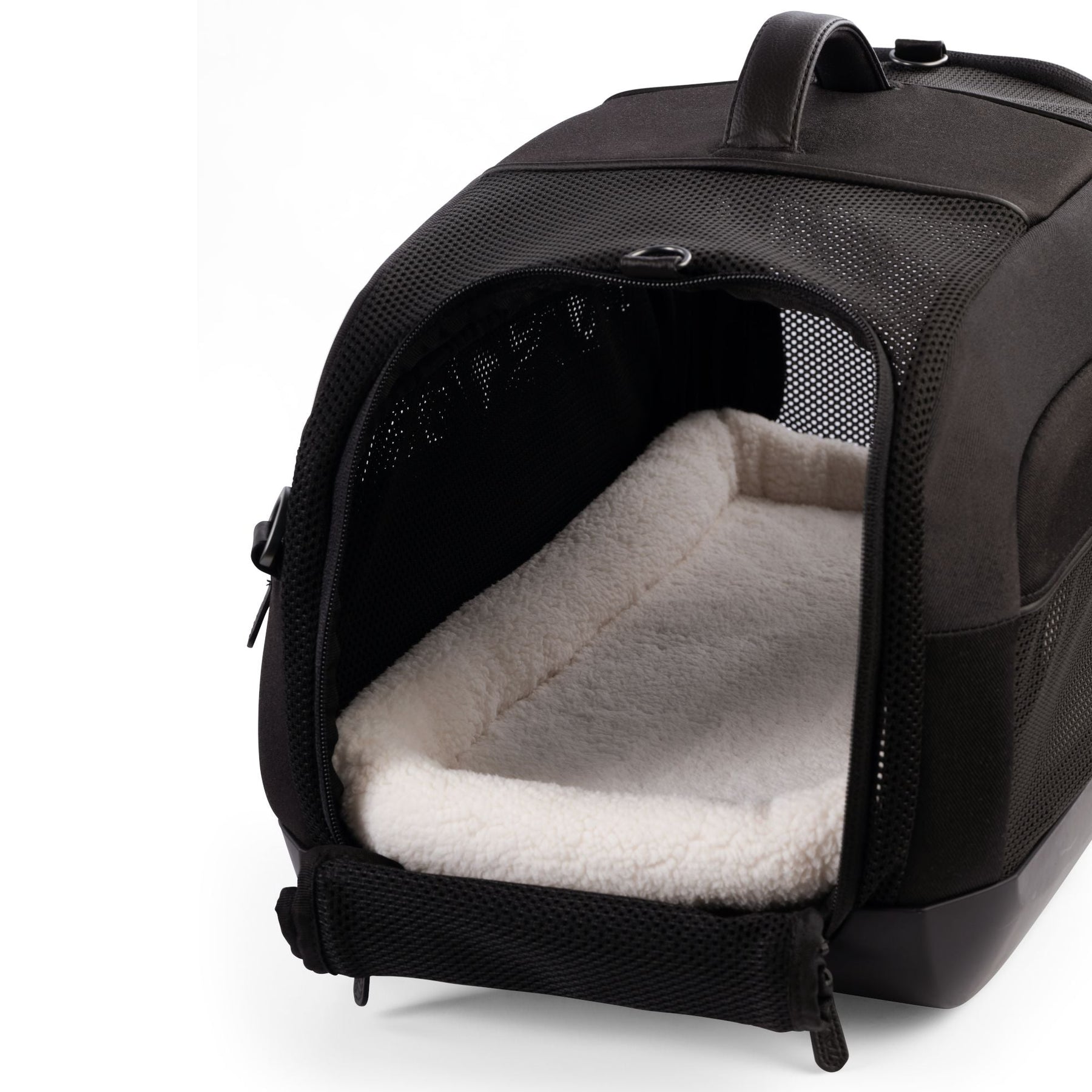 - Airline-compliant carry-on pet carrier and impact-tested pet car seat.