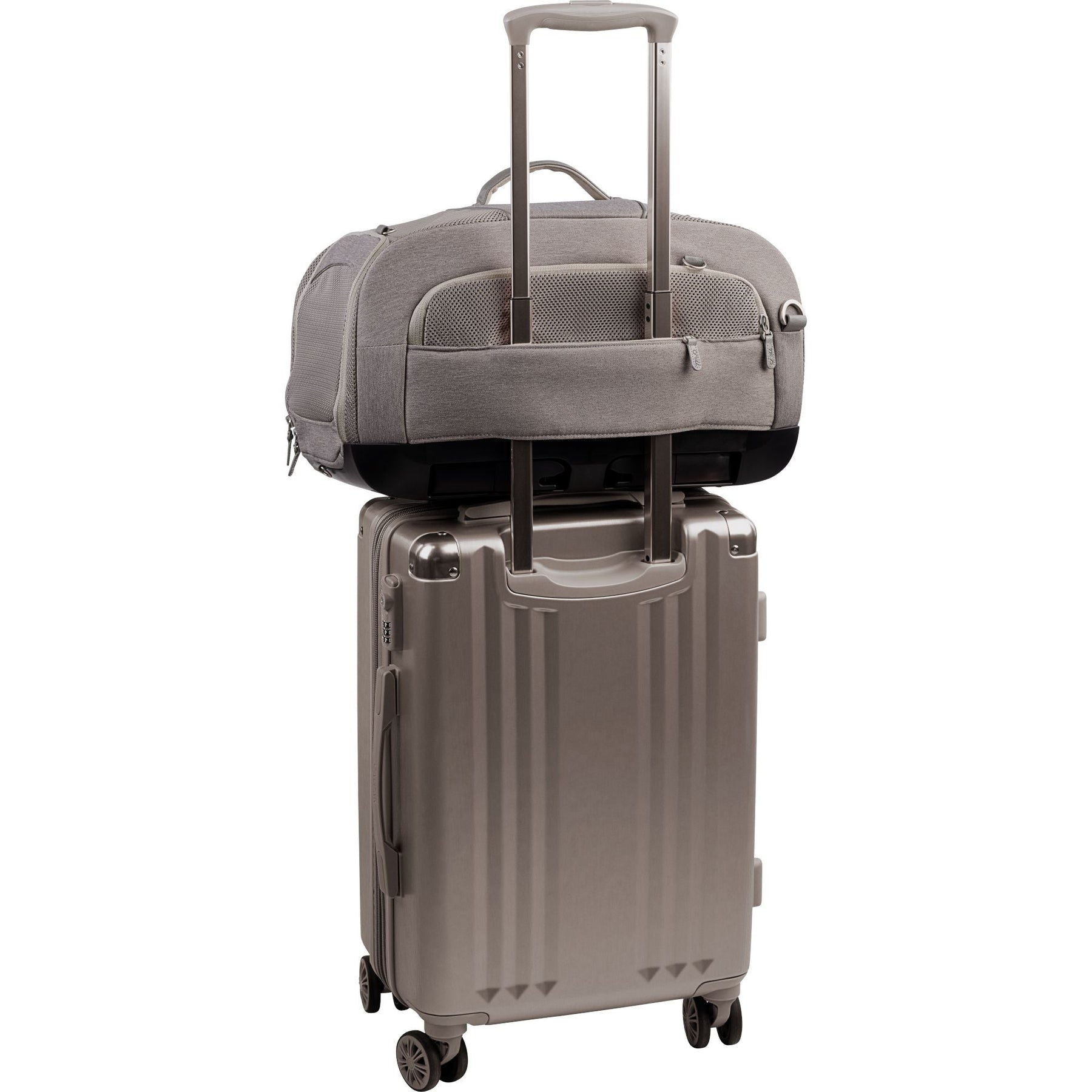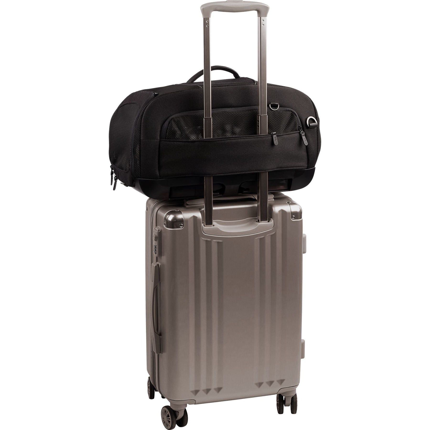 - Trolley sleeve for resting carrier on suitcase and making airport journeys a breeze.