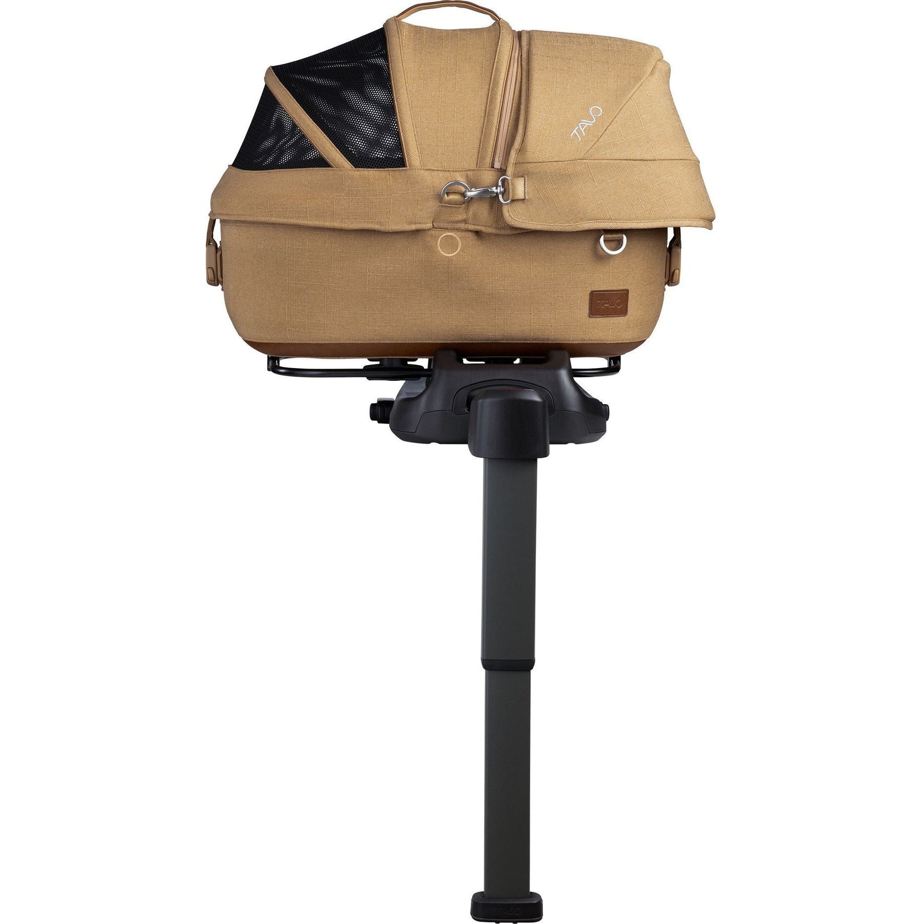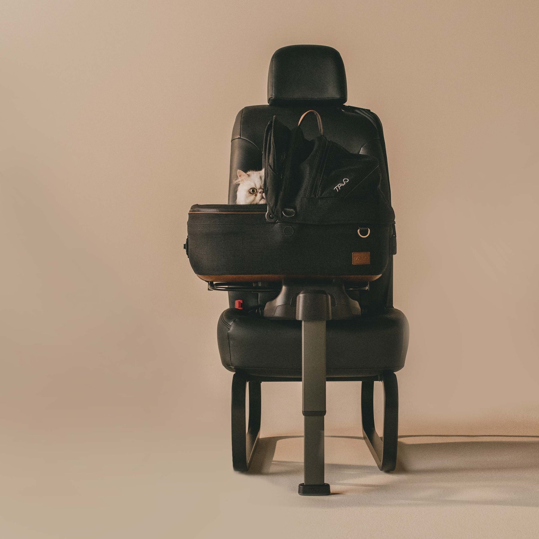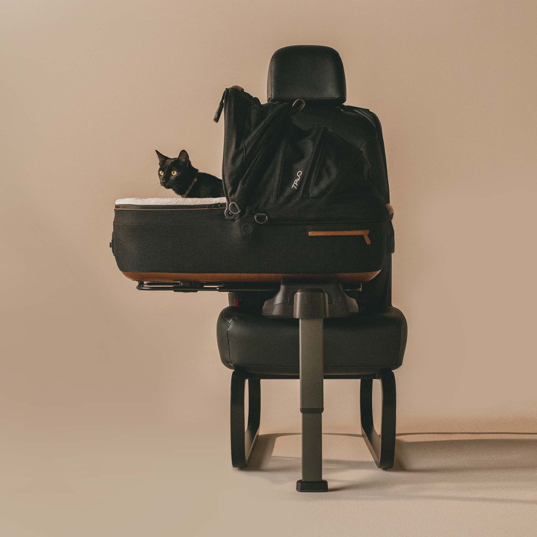 Tavo’s Maeve Pet Protection System comes with a cozy bed and carrier that connects quickly to the included vehicle base with stability leg and to our premium Roscoe stroller frame—taking your pet’s adventures inside and outside the vehicle to the next level.