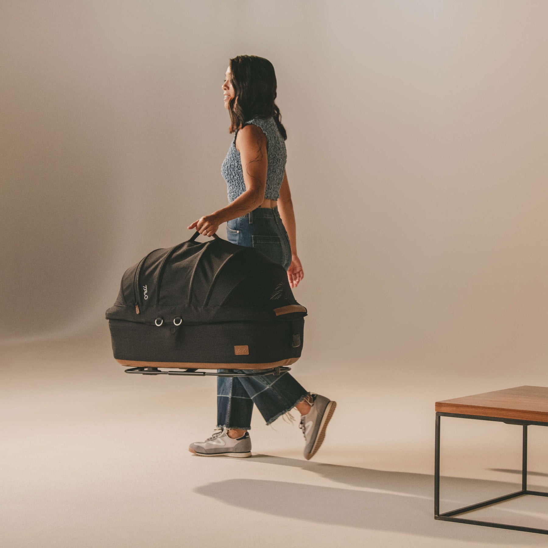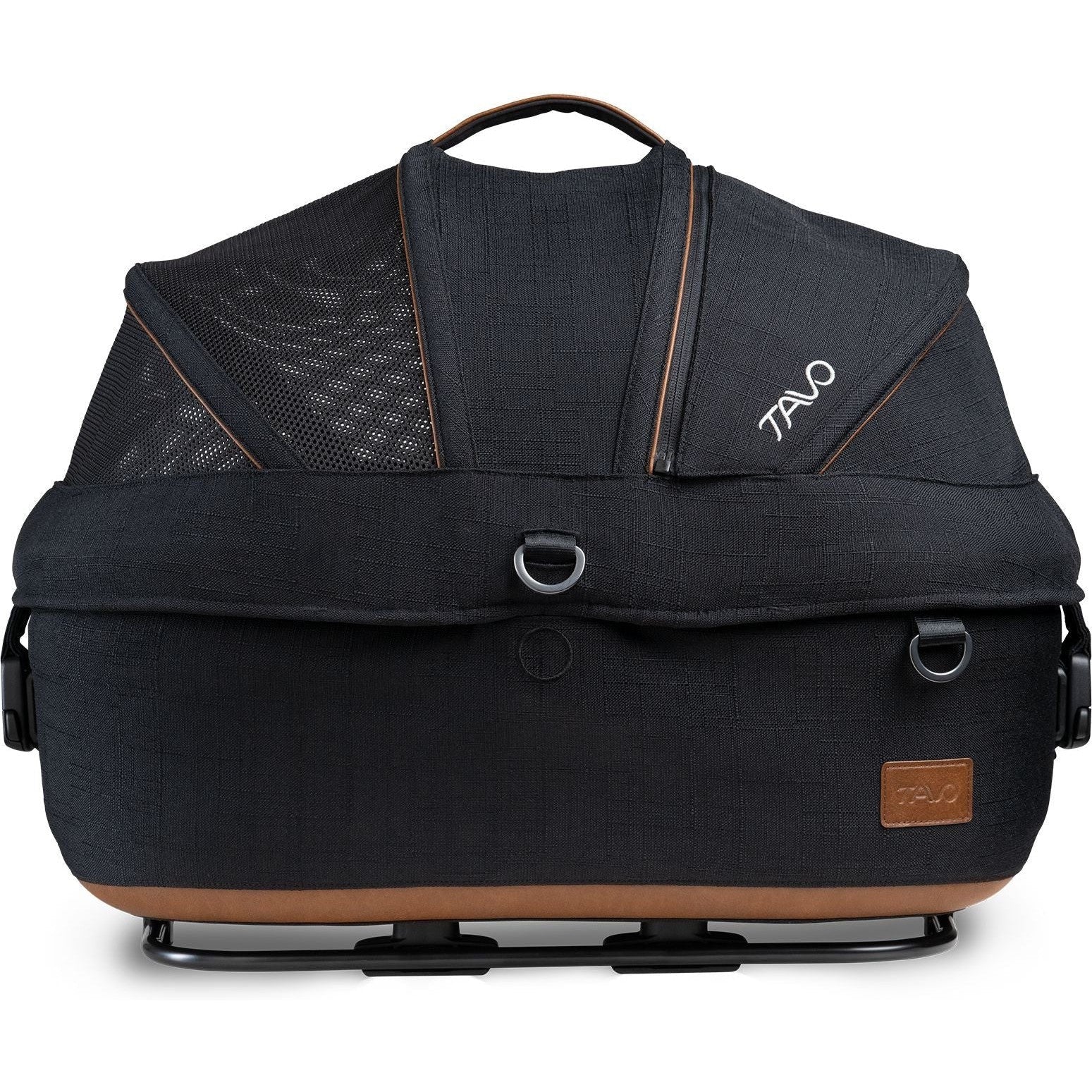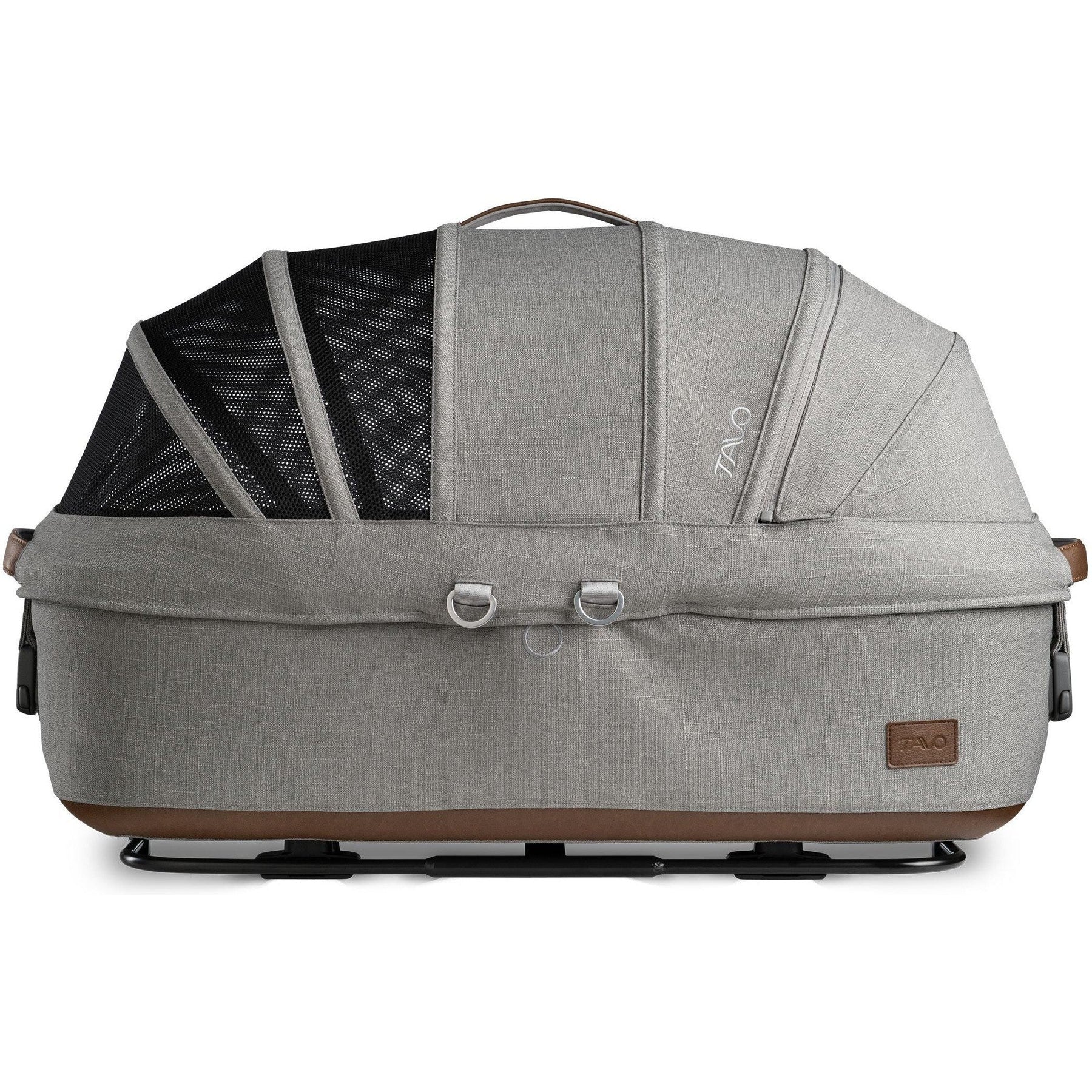 Tavo’s Maeve Pet Protection System comes with a cozy bed and carrier that connects quickly to the included vehicle base with stability leg and to our premium Roscoe stroller frame—taking your pet’s adventures inside and outside the vehicle to the next level.