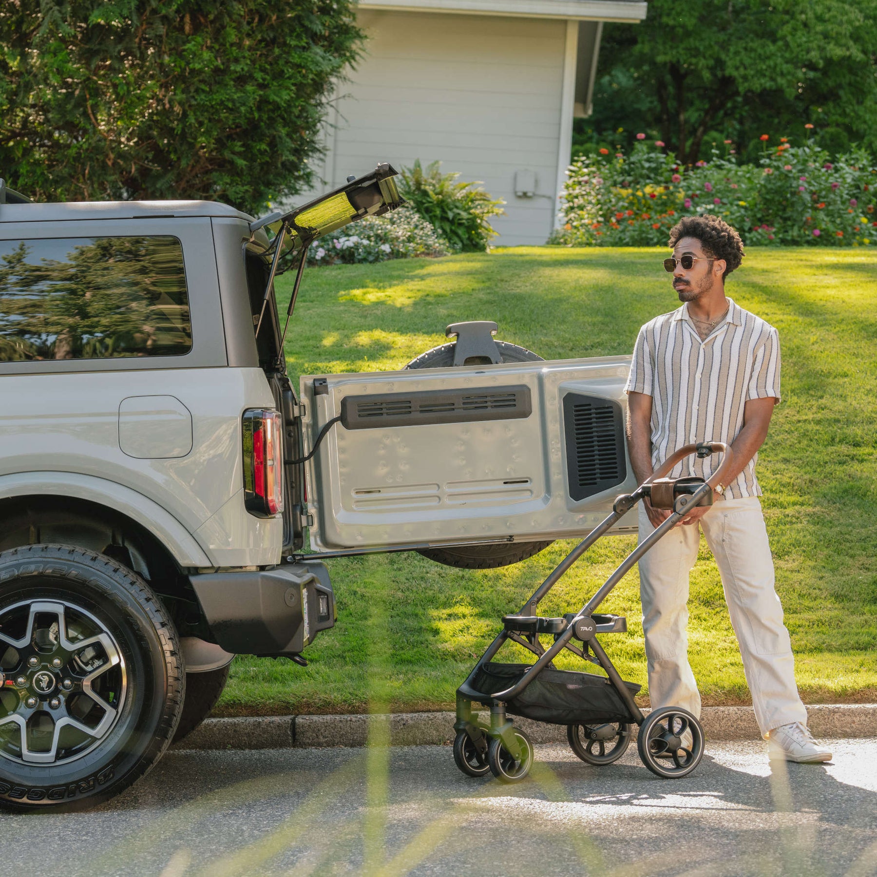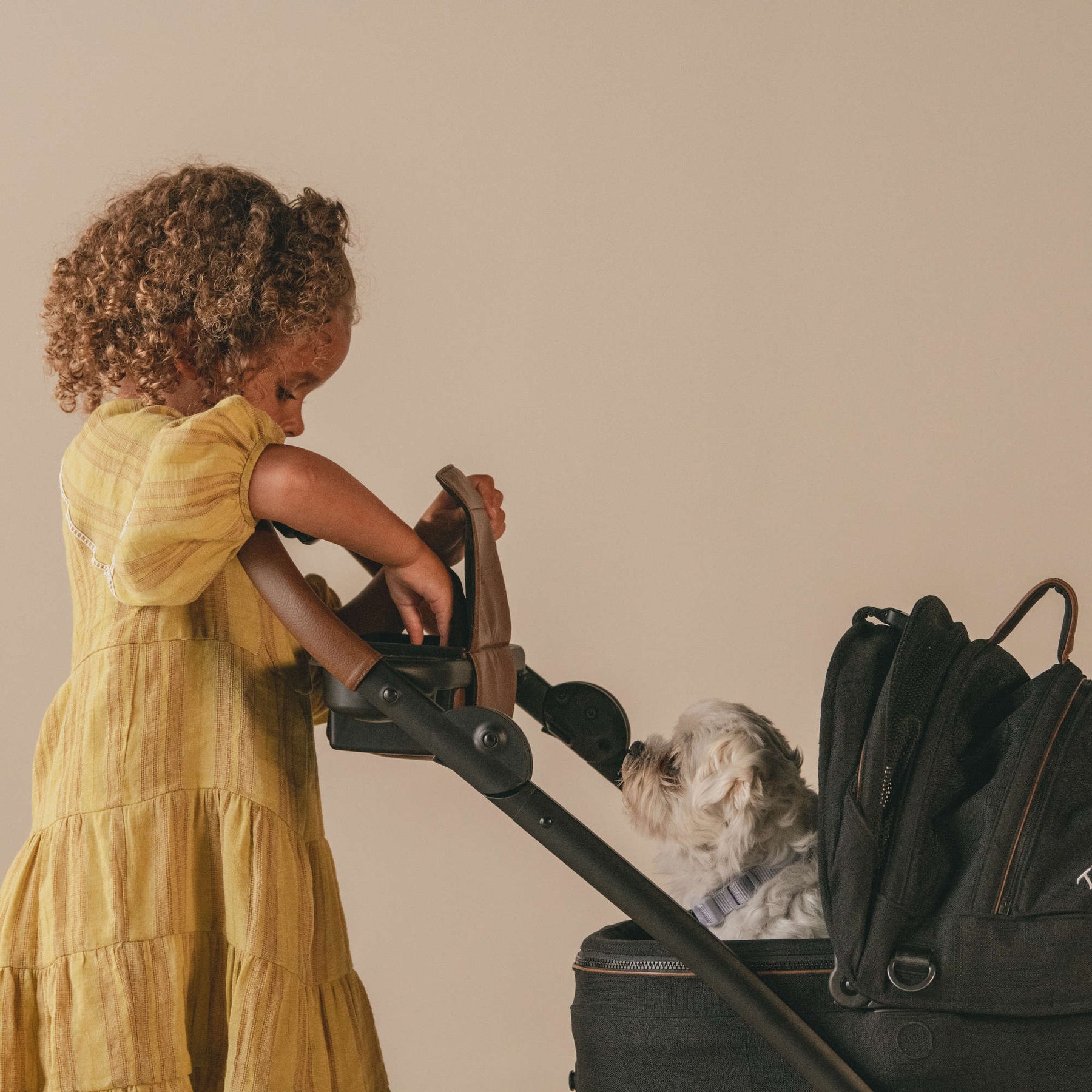 Tavo’s Maeve Pet Protection System connects quickly to the premium Roscoe stroller frame—taking your pet’s adventures outside the vehicle to the next level.