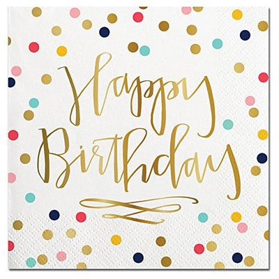 Slant Collections Happy Birthday Foil Design Cocktail Party Napkins - 20 Count