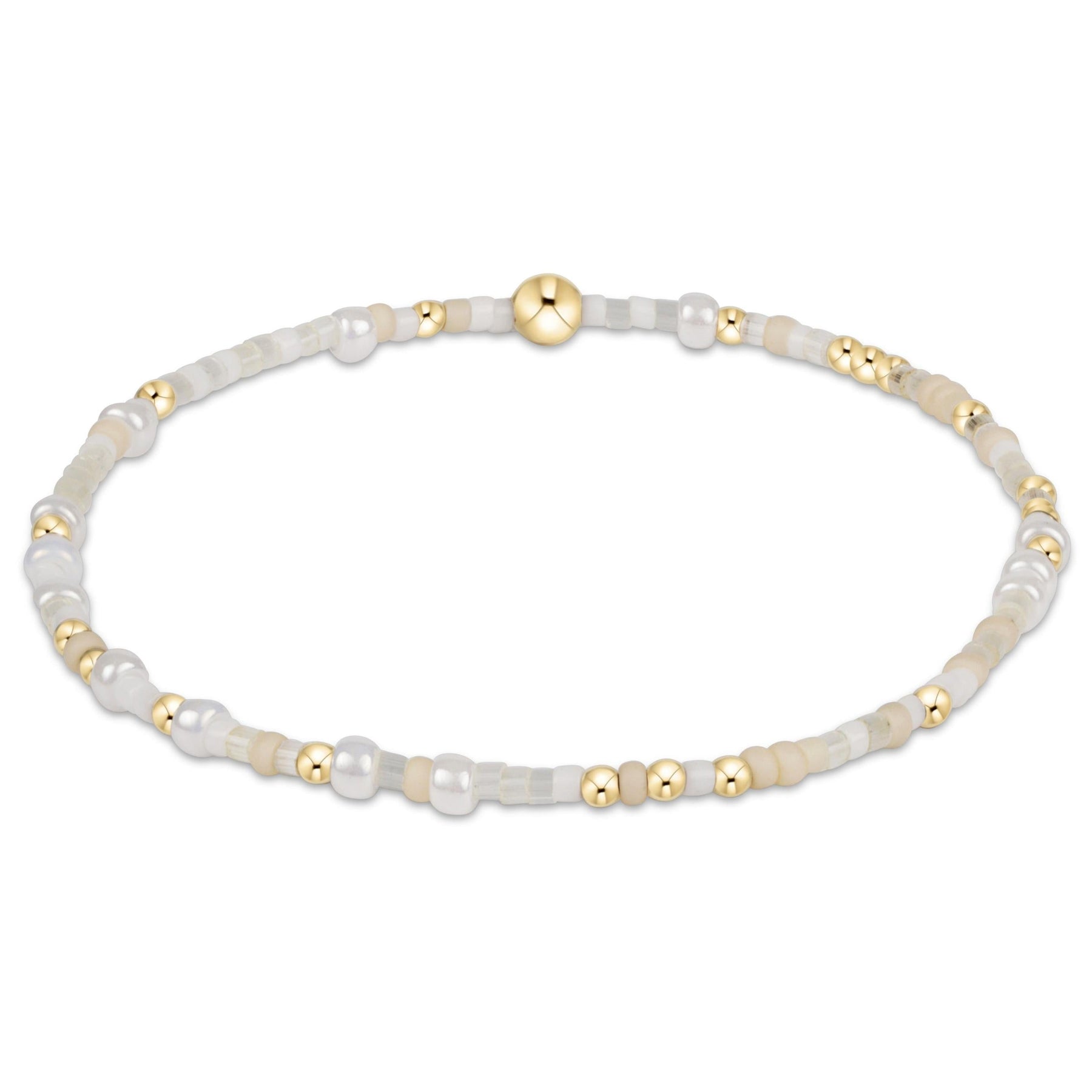 Hand beaded on high performance elastic for a slight stretch to easily roll on and off your wrist