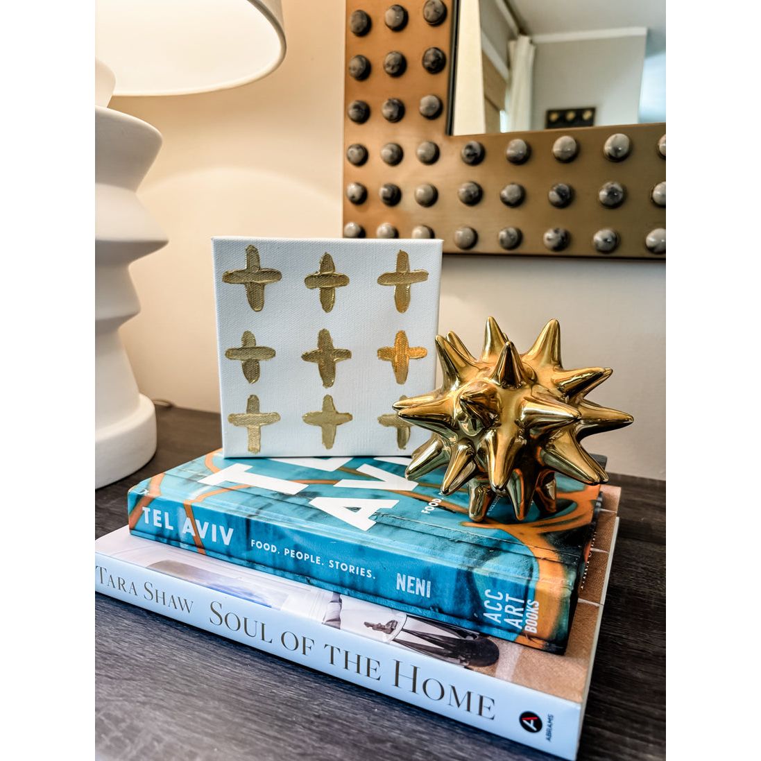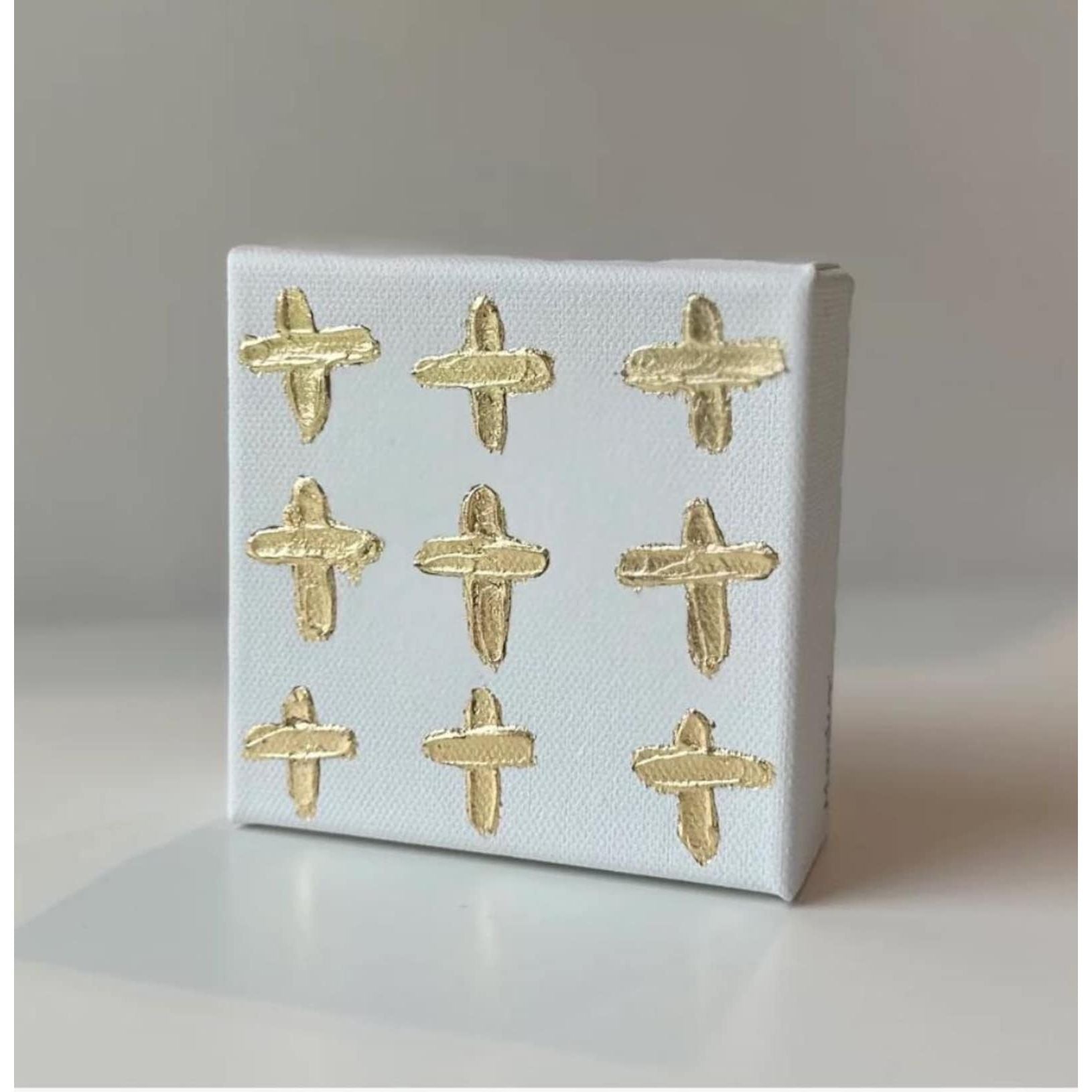 Sidebar Designs Canvas with 9 Gold Painted Crosses, 6" x 6" wide