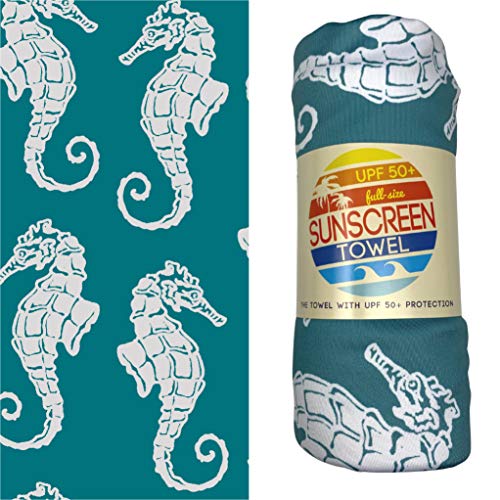 UPF 50+ Sunscreen Towel | Not only does this towel dry you off, but it protects your skin from harmful UV rays. You can go anywhere with our hooded sun protection blanket! UPF 50+ Sunscreen Technology | Made from UPF 50+ fabric and tested by an independent lab. Fabric is also: Absorbent, soft, breathable, moisture-wicking, fast drying, ultra-lightweight, heat regulating, sand free, and machine washable. This machine washable towel is the perfect sunscreen gear to protect your skin from harmful UV rays. Even your furry friends can get in on the action.