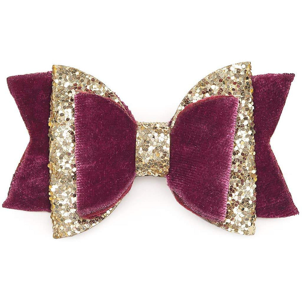 Every little girl needs the perfect hair clip to complete her look! The Berry Bow Hair Clip for kids is a fun way to celebrate Thanksgiving. This Sweet Wink clip has a velvet bow accented with a gold glitter bow. The alligator clip is ribbon-covered to help grip the hair. Color: Plumberry & Gold Size: One size fits all Material: Velvet & Glitter Pair this kids hair clip with the Thankful Rainbow Shirt and Berry Tutu for a complete head-to-toe Thanksgiving outfit!