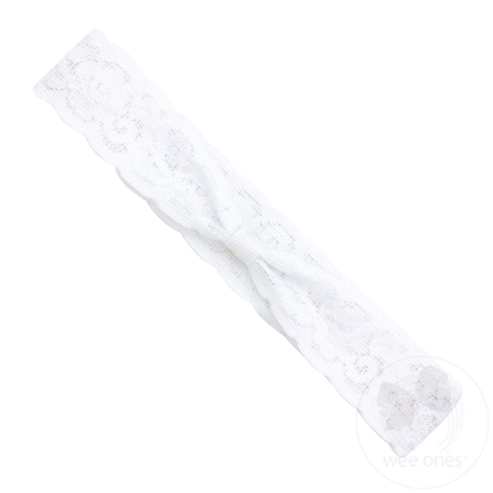 Wee Ones Add-a-Bow Wide Lace Baby Girls Headband, White
