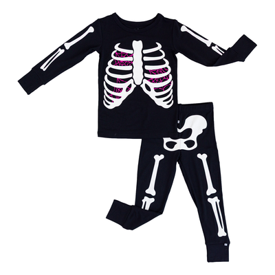 Birdie Bean Bones Glow-In-The-Dark 2-Piece Pajamas, Pink Webs
