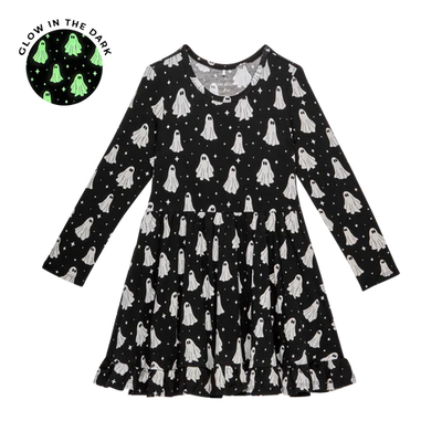 Posh Peanut Ghostly Long Sleeve Ruffled Twirl Dress