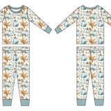 Cozy up in calm, rustic style with these autumn-ready jammies! This two-piece pajama set features a serene print of watercolor pumpkins and fall foliage in soft, earthy tones. Perfect for welcoming the season in comfort. Made from our signature bamboo blend, it’s breathable, stretchy, and buttery soft—ideal for crisp evenings, storytime snuggles, or lazy weekend mornings.