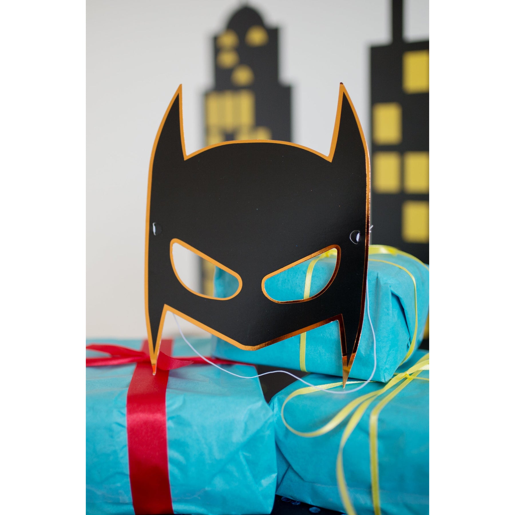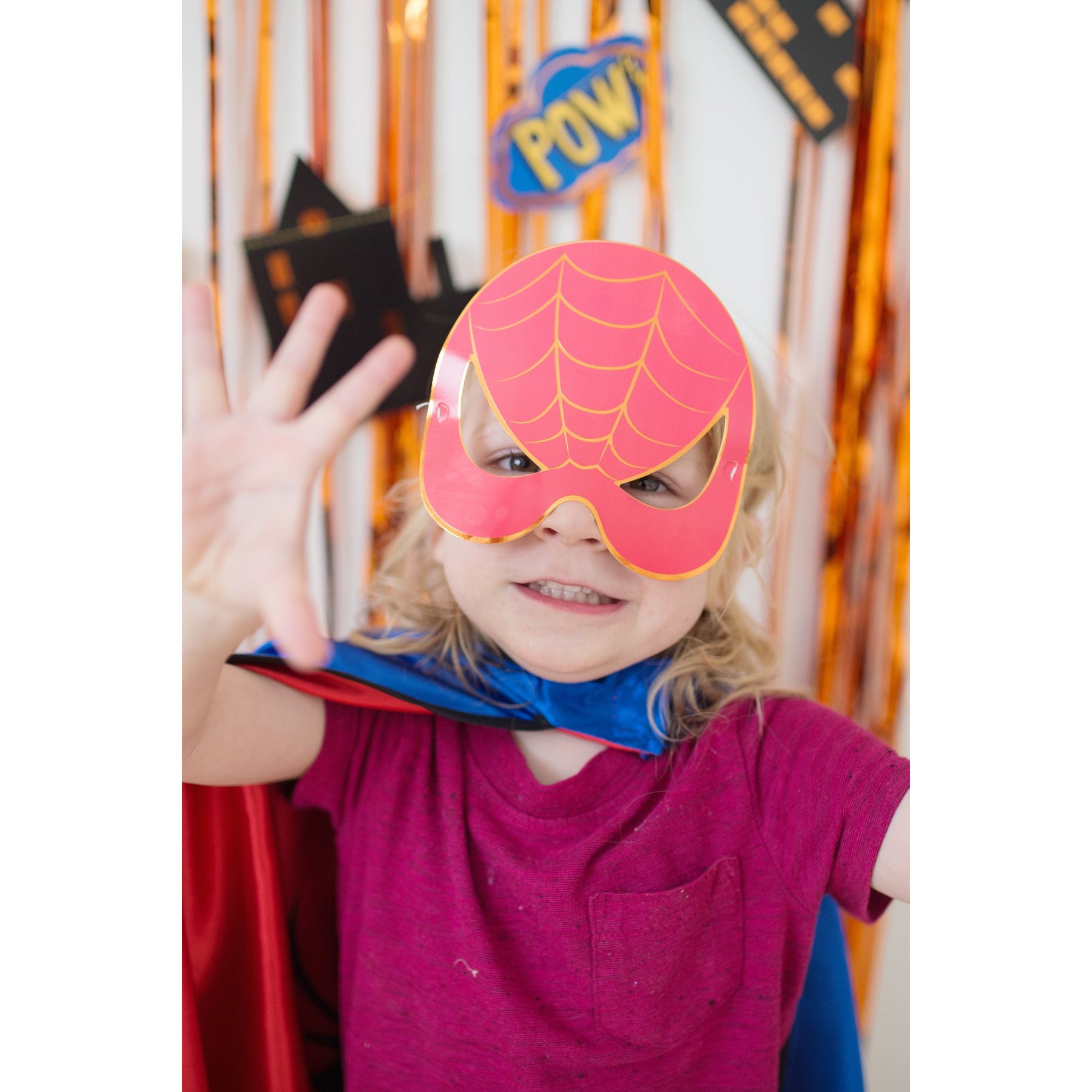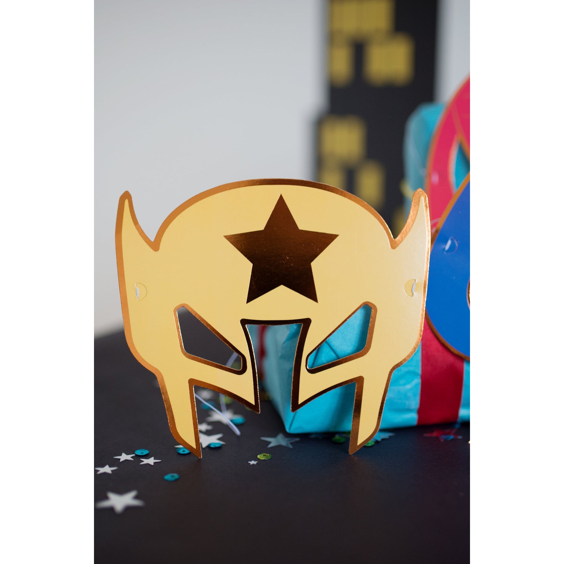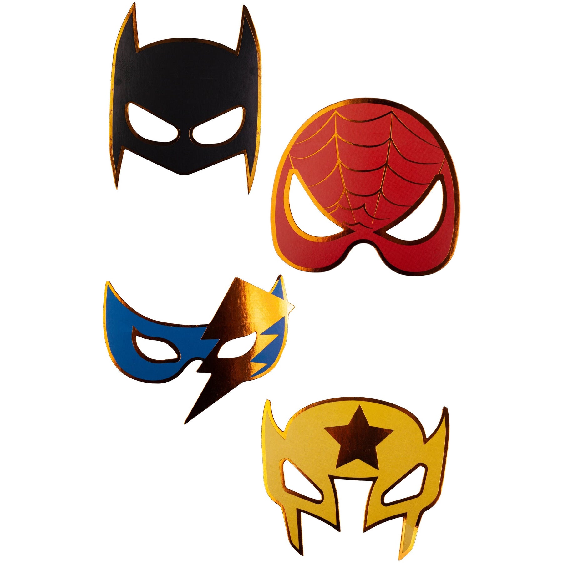 The perfect dress up for your heroic superhero party. Inspired by popular superheros each mask is highlighted with a flashy metallic copper trim. Package includes 8 paper masks of 4 designs, ranging from 5.5" - 6.25" in size