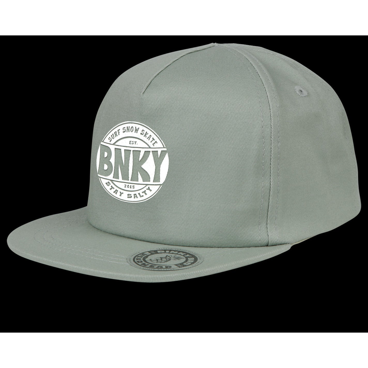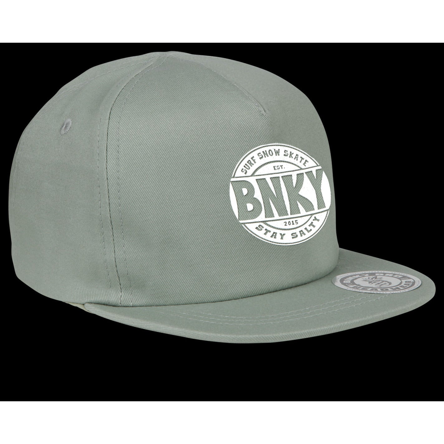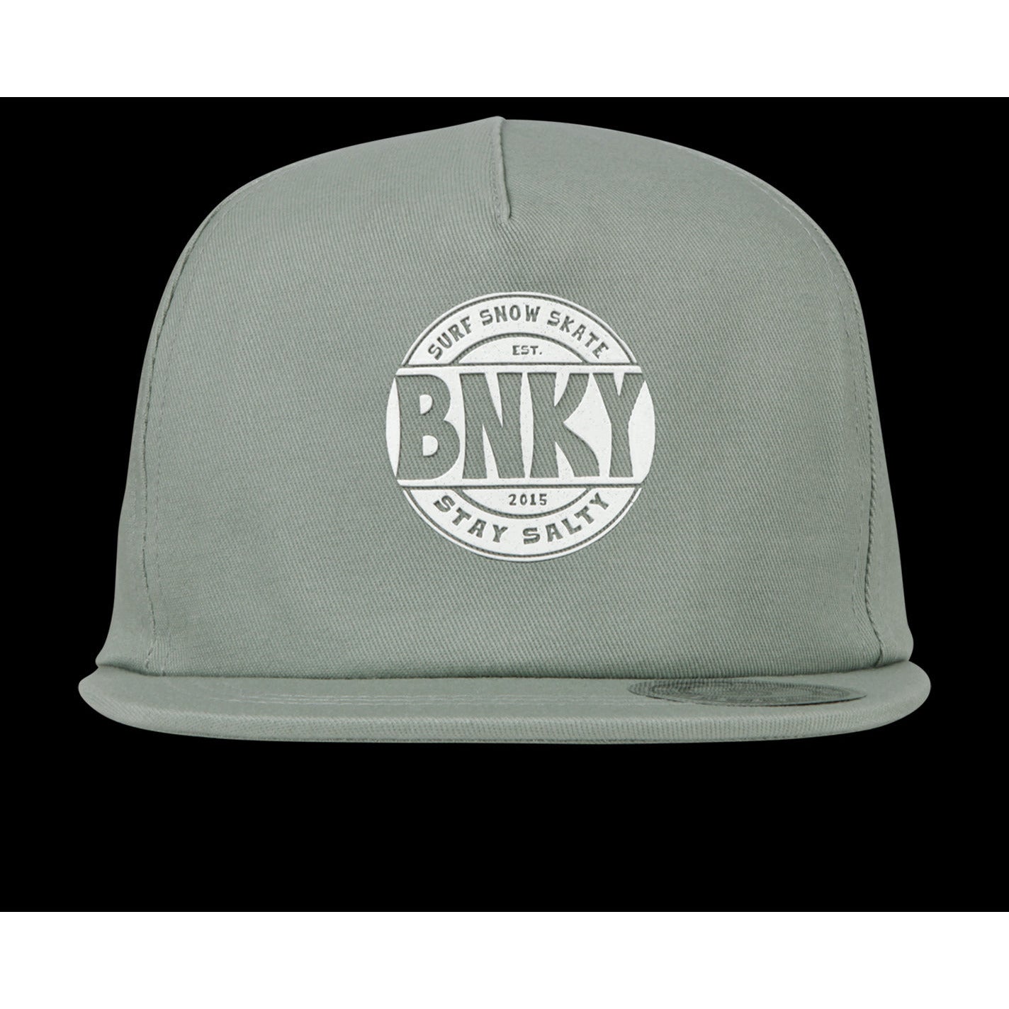 The Temecula hat has a new "Surf Snow Skate - BNKY" logo on the front. All panels are made from a 100% cotton fabric. The back snap is a matching color.