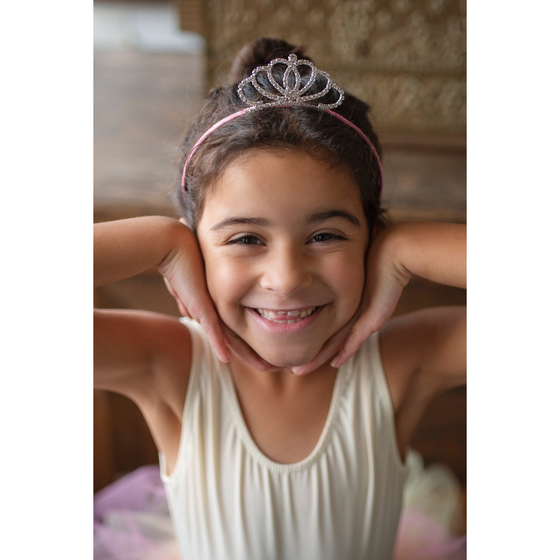 Imitation silver plating with crystal gemstones makes this tiara a true treat. Get the look of a cute tiara with a comfortable headband instead!